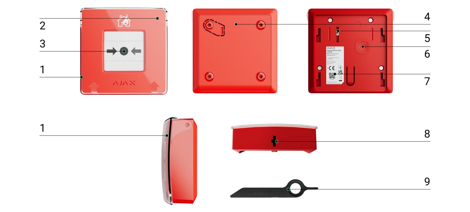 Ajax Manual Call Point is a wireless manual alarm activation button that allows you to activate the alarm in an emergency situation. A special tool (key) included in the package is used to reset the button. This device is intended for indoor installation only.