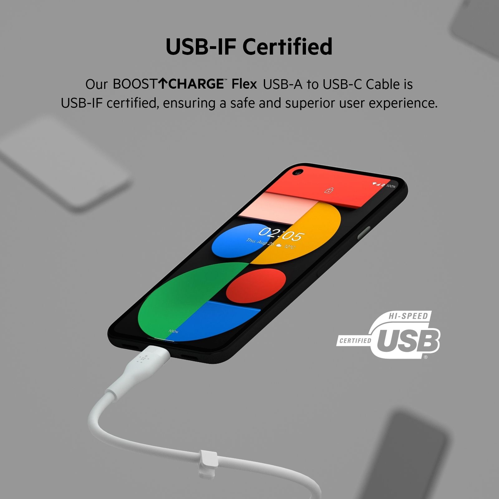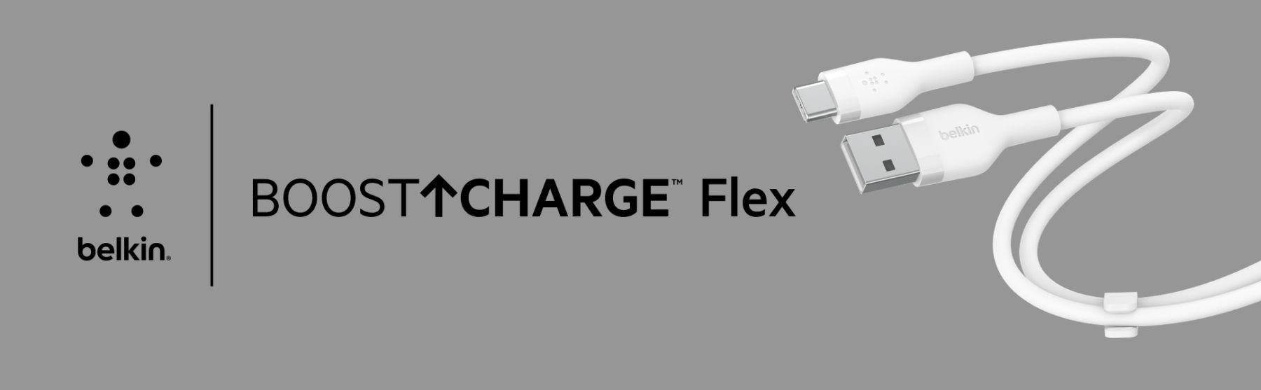 Get flexible softness with increased durability and performance in a charging cable. Our USB-IF certified BOOST CHARGE Flex silicone cables are designed to resist tangles, kinks, and frays, giving you enhanced functionality in your USB-A to USB-C cable. Comes in 1M/3.3FT, 2M/6.6FT, and 3M/10FT lengths. Available in 4 stylish colors—black, white, blue, and pink.