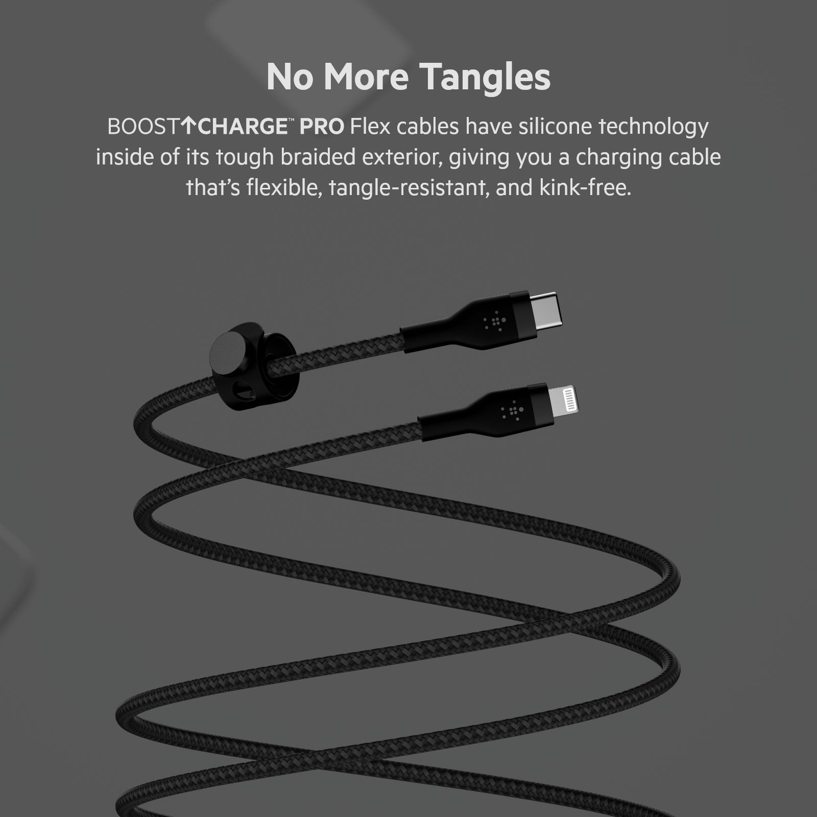 BELKIN silicone cables are built to endure daily use and deliver long-lasting durability — up to 25 times stronger than standard cables. They come with a strap and a magnetic button that attaches to an adhesive metal plate, allowing for easy and convenient cable storage anywhere. The cable base is made from satin-finished aluminum, adding extra strength and a touch of style.