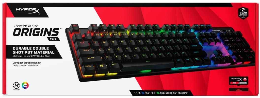 HyperX mechanical keyboard Alloy Origins PBT 104key, Red, USB-A, EN/UA, RGB, black
