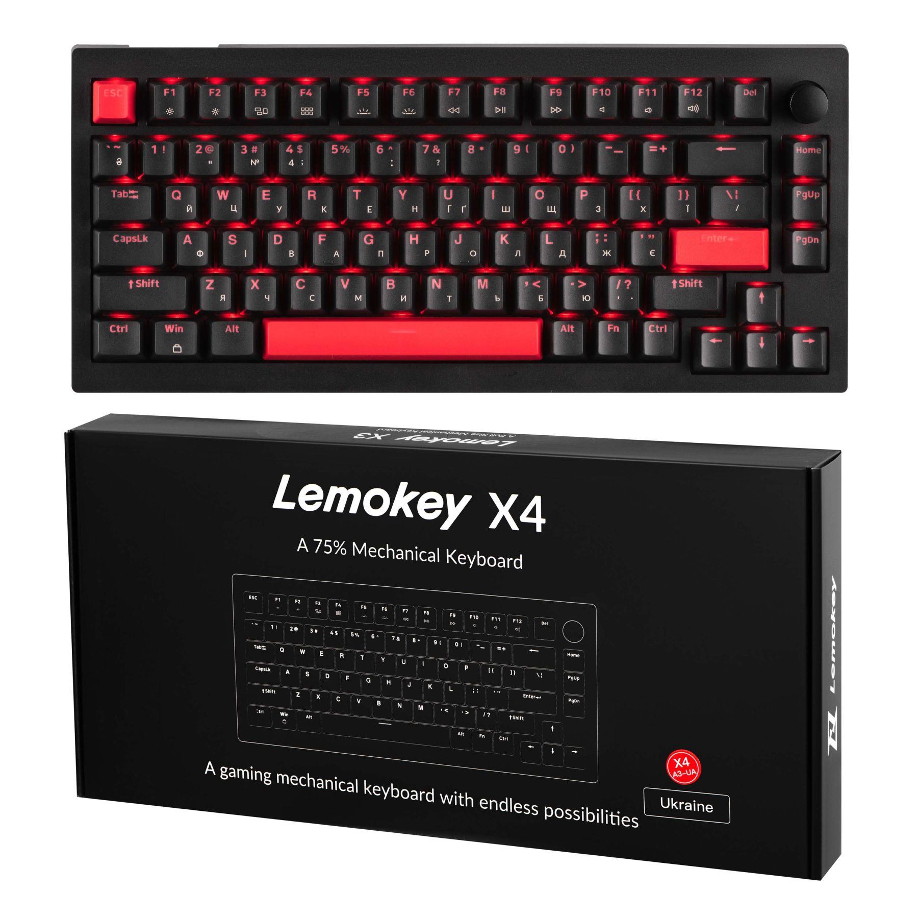 Mechanical keyboard Lemokey X4 84Key, Keychron Brown, USB-A, QMK/VIA, EN/UKR, Red led, чорний