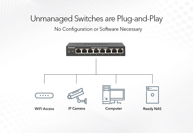Get networks up and running with plug-and-play unmanaged switches. Set it and forget it, energy-efficient switches are built like tanks and last for decades.