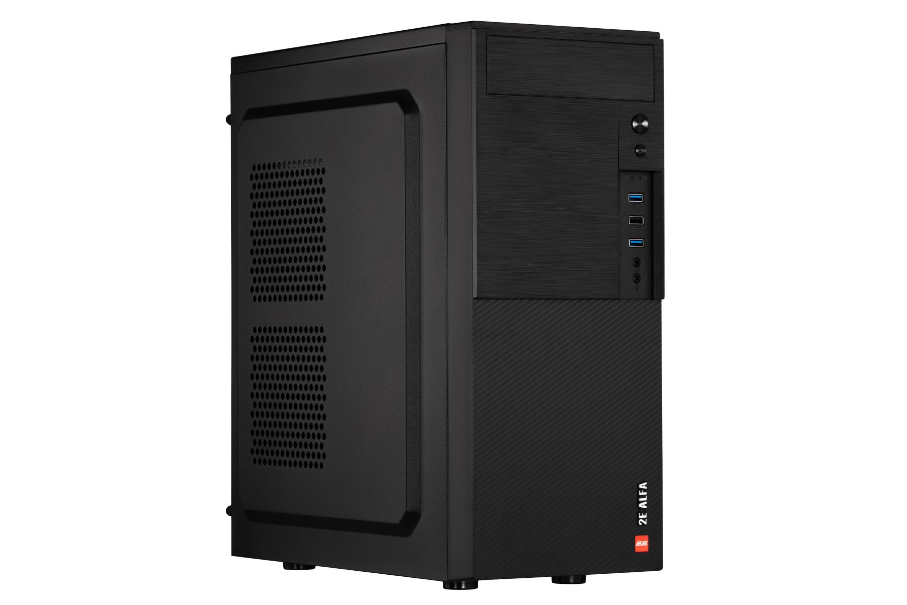 The 2E ALFA (2E-E190-3U) PC case with a combined stylish front panel. This model is a perfect choice for both individual and industrial assembly, thanks to a rationally organized interior space and a simple construction. It is made of steel 0.5 mm thick. The Mid Tower chassis form factor is perfectly compatible with ATX, Micro ATX, Mini ITX motherboards.