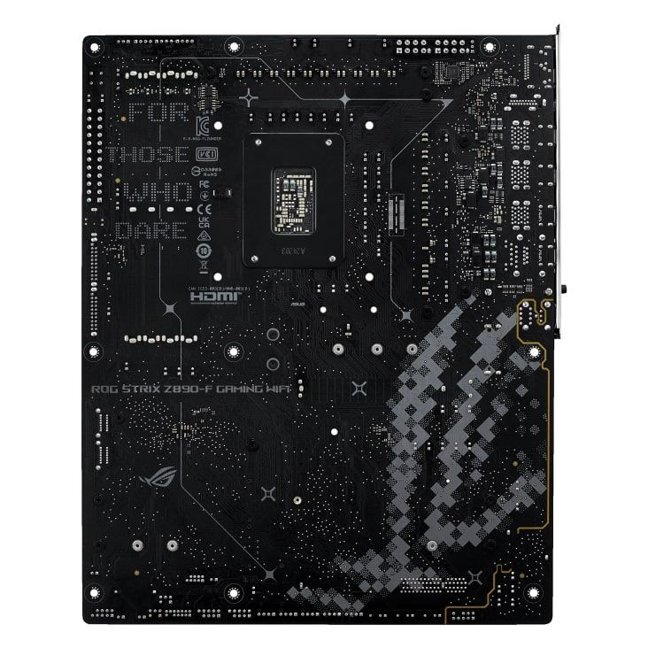 The ROG Strix Z890-F is sleek and understated for seamless integration with a wide range of system components. Its deep black surface and matching metallic heatsinks create a dark, intense look, while the Polymo lighting on the I/O shroud offers customizable RGB effects – so you can choose between a subtle appearance or a bold, eye-catching statement.
