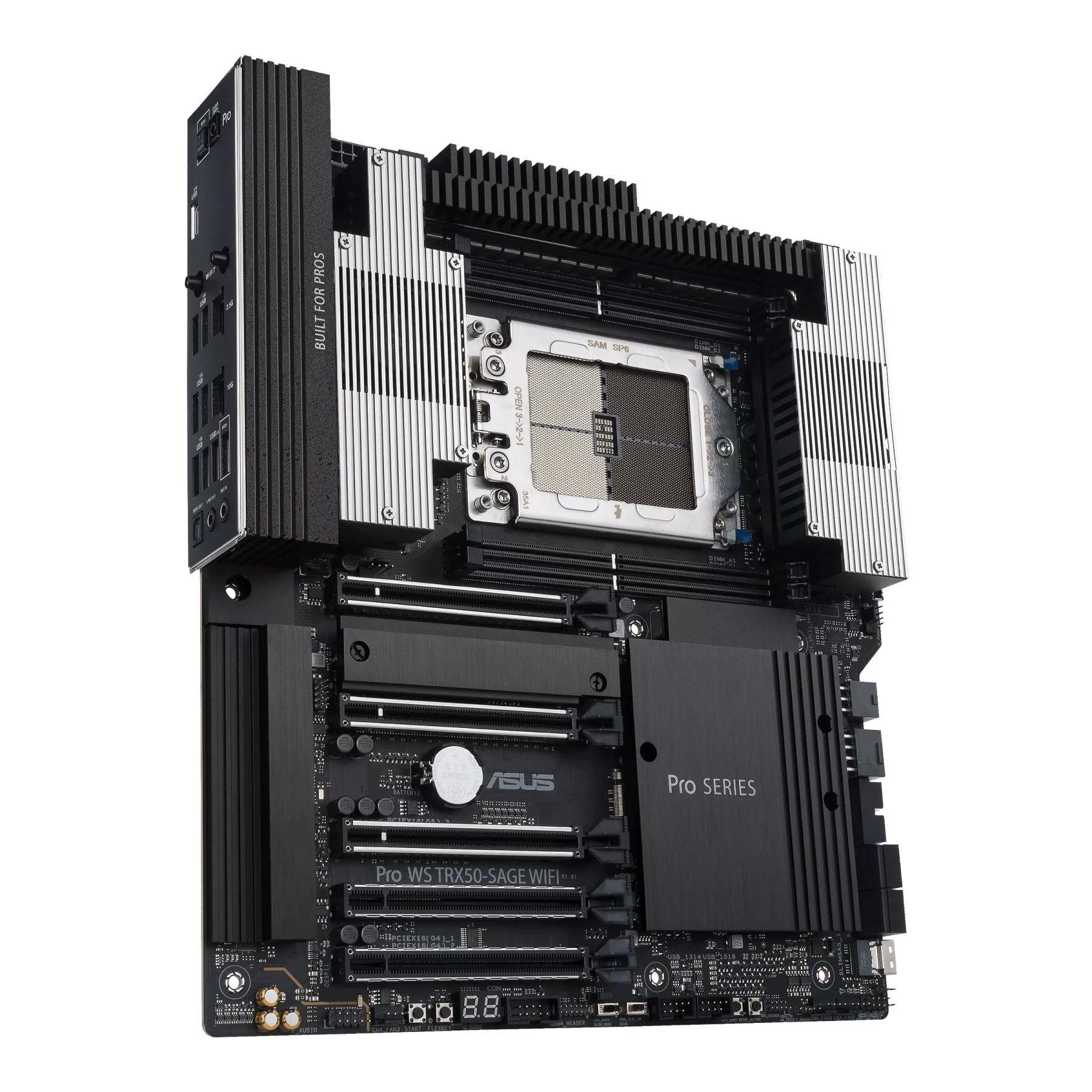 The Pro WS TRX50-SAGE WIFI motherboard features several PCIe® 5.0/4.0 x16 slots that provide flexible system configurability and expandability. With high-powered graphics cards, it can bring enhanced performance in modelling, simulation and rendering applications.
