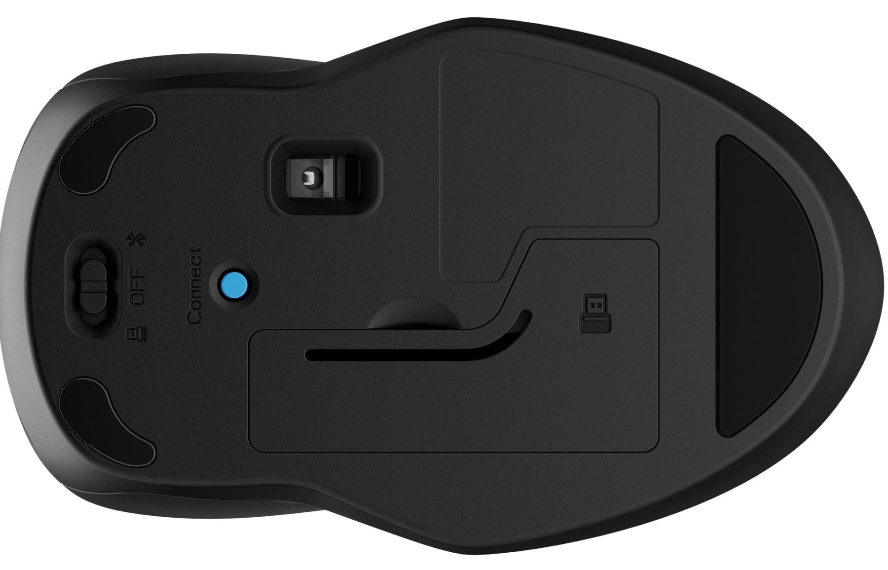 Work how you want, where you want on virtually any surface with this sleek, full-size mouse that offers easy plug-and-play connectivity, two switchable wireless connectivity options, and flexible productivity features and comfort throughout the day.