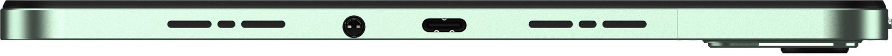 The tablet boasts a sleek design with a slim body and the elegant Vitality Green color, making it both functional and visually appealing.