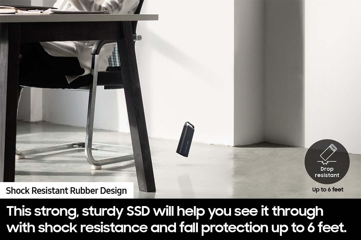 The T5 EVO Shield also offers AES 256-bit hardware encryption for enhanced data security. It is compatible with a wide range of devices, including PCs, Macs, smartphones, and gaming consoles, ensuring versatility in usage. Samsung T5 EVO Shield is the ultimate solution for those seeking reliability, speed, and portability in data storage.
