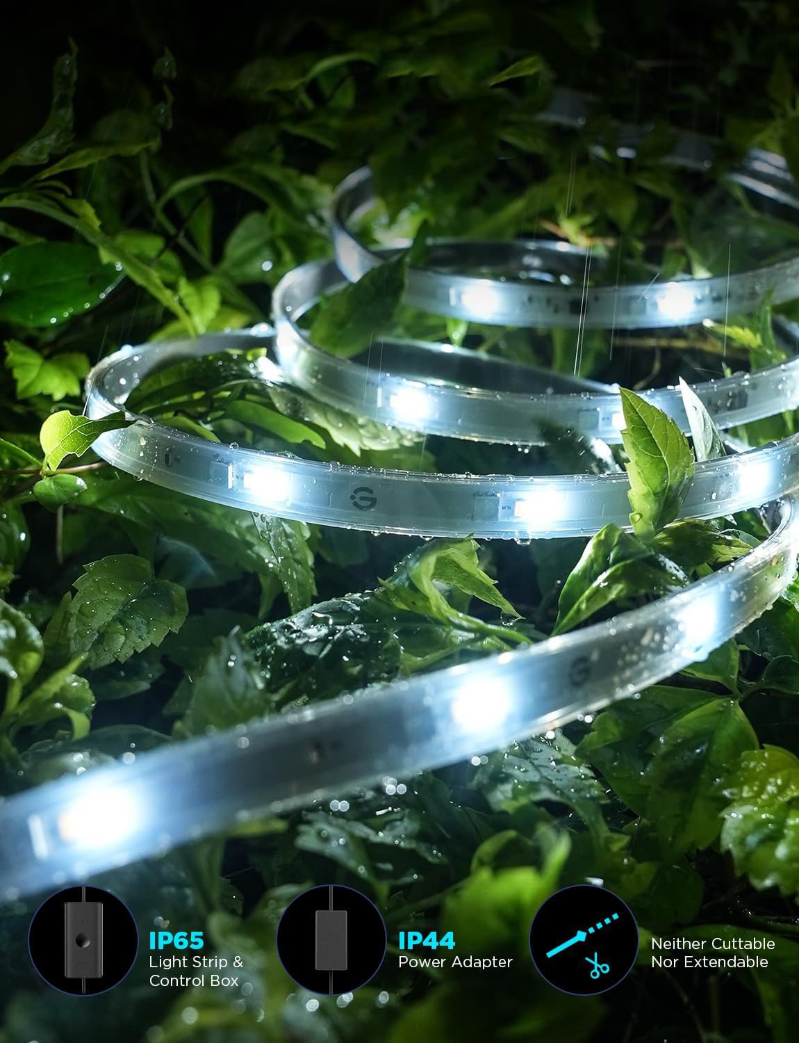 Brighten up your patio, eaves, garden, or outdoor spaces with the Govee H70A1 Phantasy Outdoor LED Strip (10M). Featuring RGBICWW technology, it displays multiple colors at once while offering warm and cool white LEDs for everyday lighting or security.