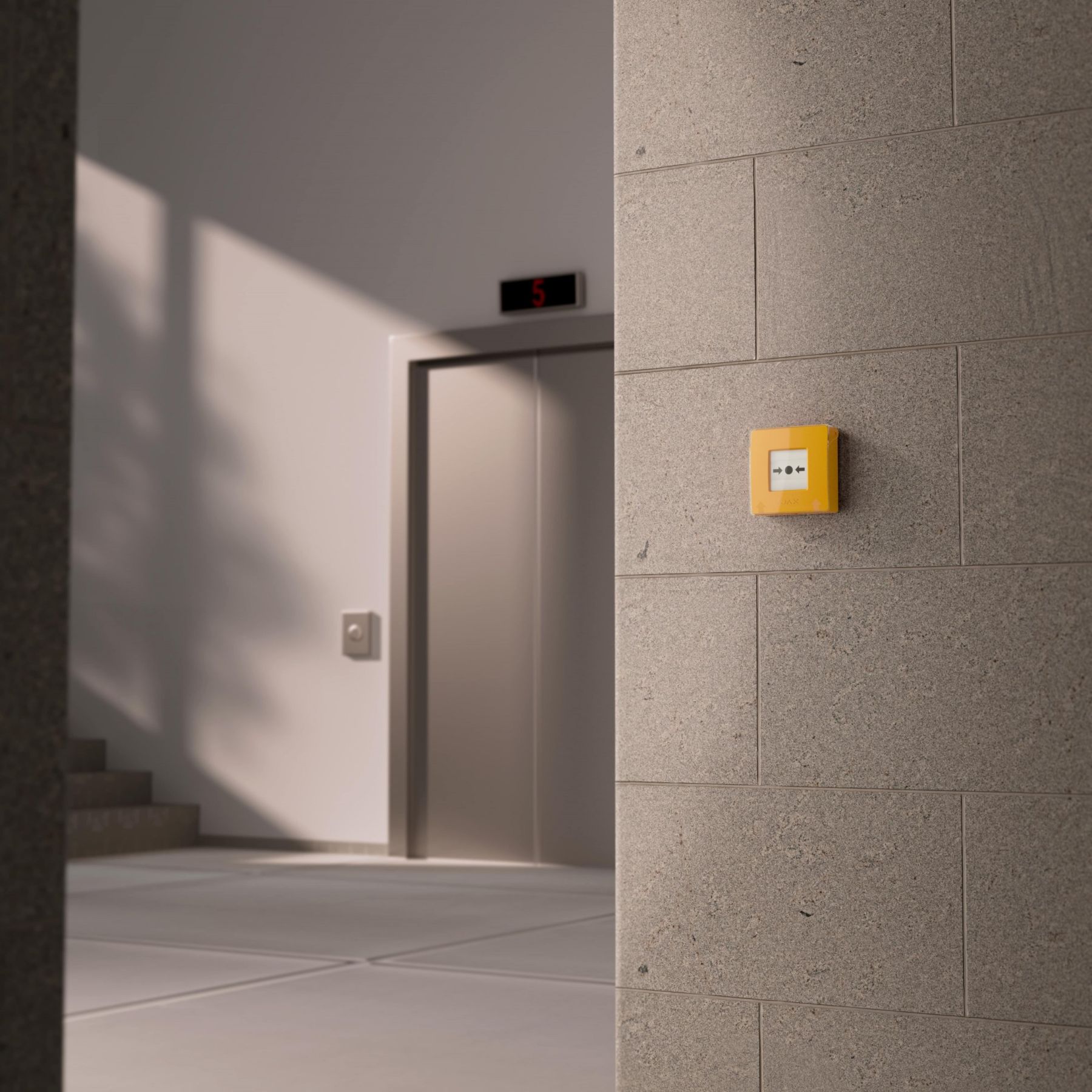 Бездротова настінна кнопка для активації пожежної тривоги вручну для житлових об'єктів Ajax Manual Call Point, jeweller, бездротовий, жовтий
