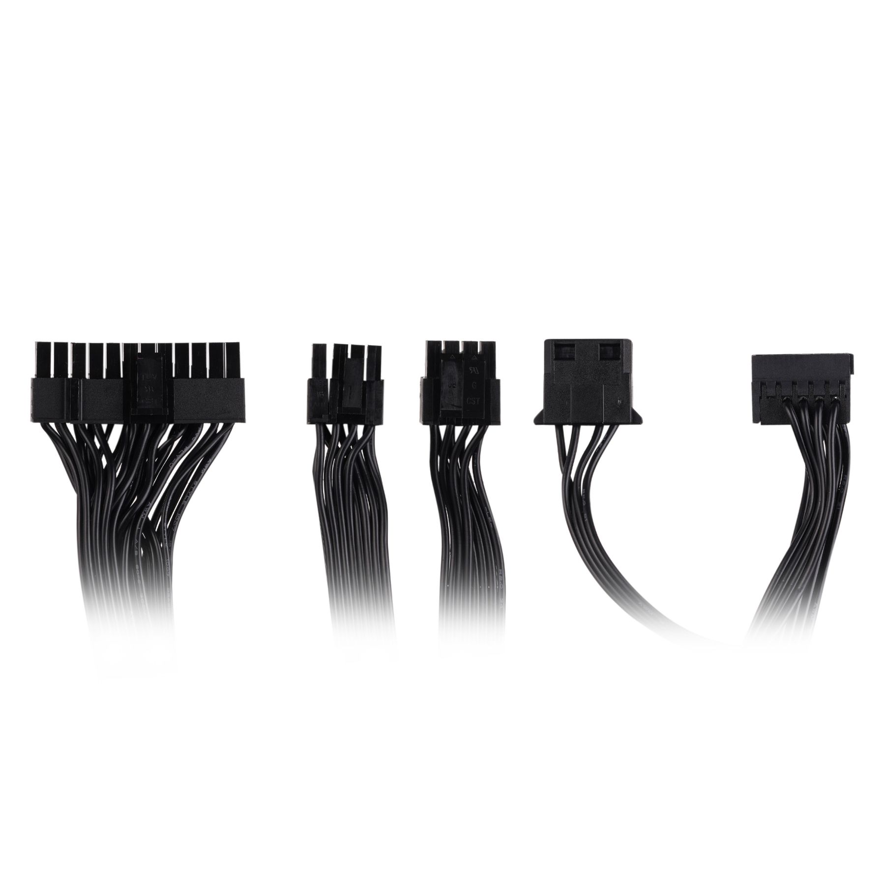 Конектори:1 x MB 24(20+4) pin, 500мм, 4 x PCI-E 8(6+2) pin, (500+150мм)*2, 1 x CPU 8(4+4) pin, 550мм, 5 x SATA, 500+150+150мм/ 500+150мм, 3 x Molex, 950мм / 800+150мм