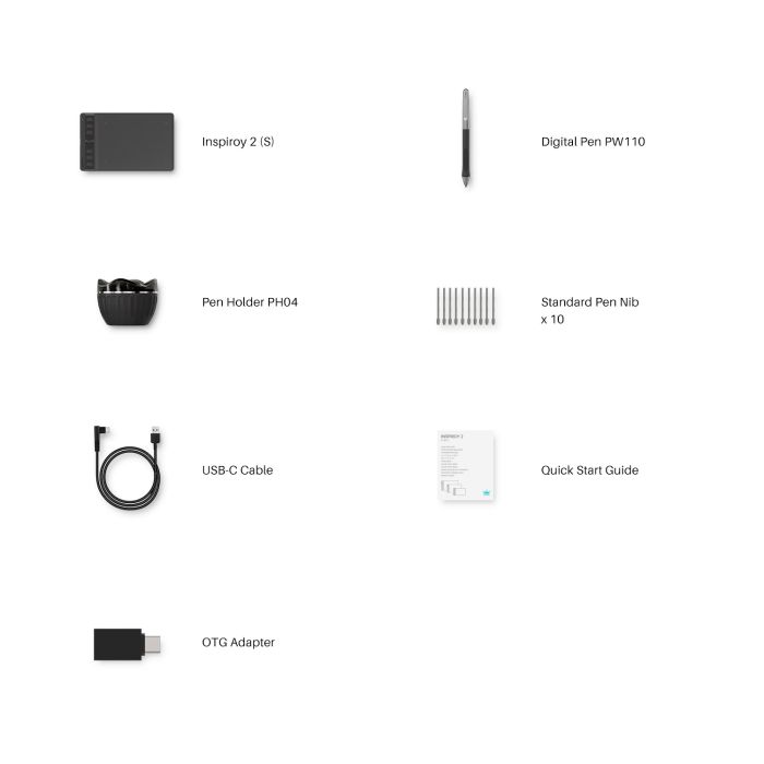 Комплектація:перо, кабель USB-C, інструкція, підставка для пера, адаптер USB, 10 змінних наконечників
