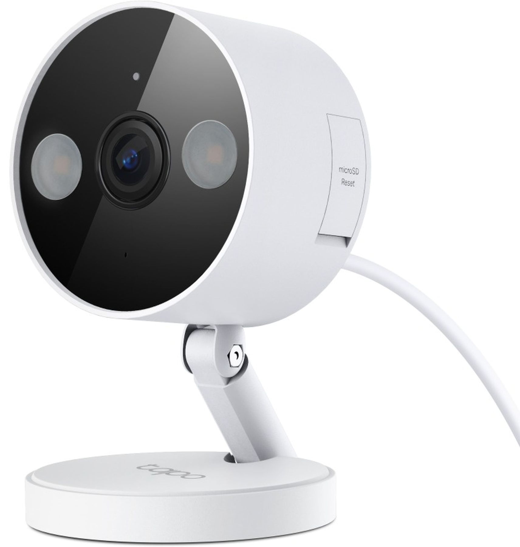 Двосторонній звук з шумозаглушенням, налаштовувана сигналізація (світло + звук до 96 дБ), зони активності та перетинання ліній. Локальне зберігання на microSD до 512 ГБ або хмарне Tapo Care з 30-денною історією. Магнітна основа та 3-метровий кабель спрощують монтаж, сумісність з Alexa та Google Home для голосового керування.