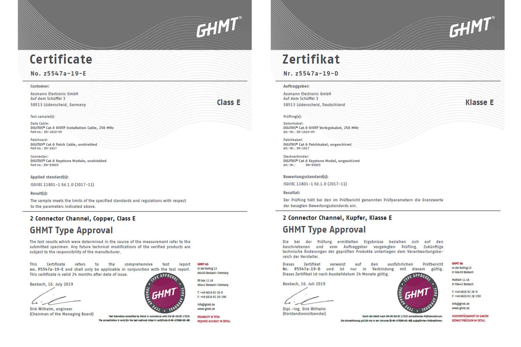 - QUALITY CHARACTERISTICS: LAN cable is unshielded (U/UTP shielding) – Channel link GHMT certified – Standards: ANSI/TIA-568-C, ISO/IEC 11801, IEC 61156-5, DIN EN 50173-1/4, DIN EN 50288-6-1, IEC 60332-1-2, EN 50174-2