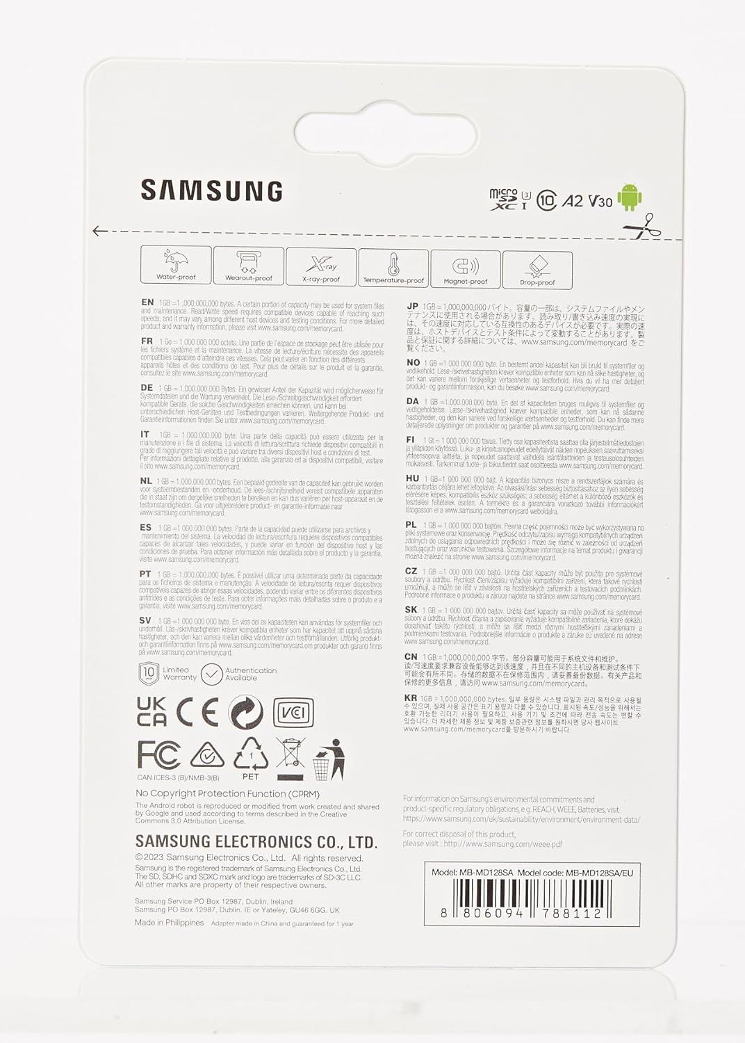 Карта постачається із 10-річною гарантією від Samsung, що підтверджує її надійність і довговічність.
