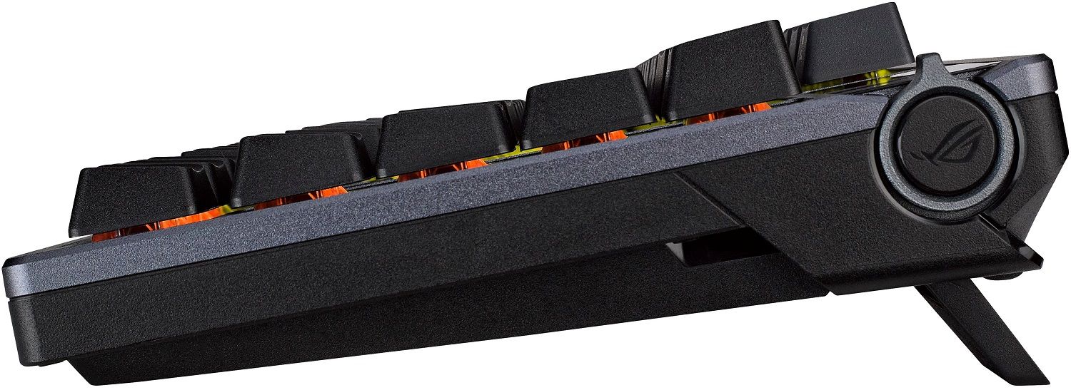 - Ковпачки ROG PBT Doubleshot – Подвійні ковпачки ROG PBT забезпечують унікальне та чудове відчуття, а також забезпечують тривалий термін служби. Конструкція клавіш була оптимізована за рахунок ковпачків клавіш середньої Висоти (Схожих на ковпачки клавіш Профілю Cherry) та більш короткого стрижня, щоб зменшити коливання клавіш та забезпечити зручнішу взаємодію з користувачем.