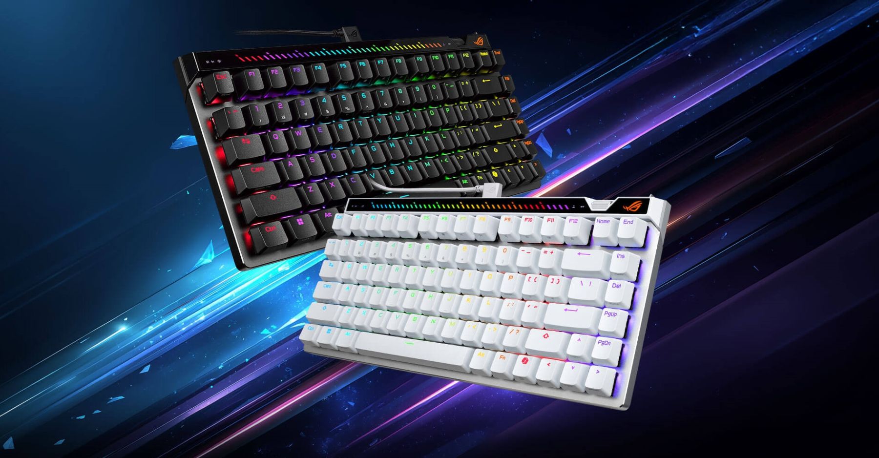 ASUS ROG Falchion Ace 75 HE створена для динамічних ігрових сесій і точного керування. Магнітні перемикачі дозволяють змінювати глибину спрацювання під індивідуальні потреби. Компактний формат зберігає всі основні клавіші без перевантаження робочого простору. Інтерактивна сенсорна панель і колесо налаштування спрощують керування параметрами без програм. Багатошарове демпфування покращує акустичний комфорт під час набору.