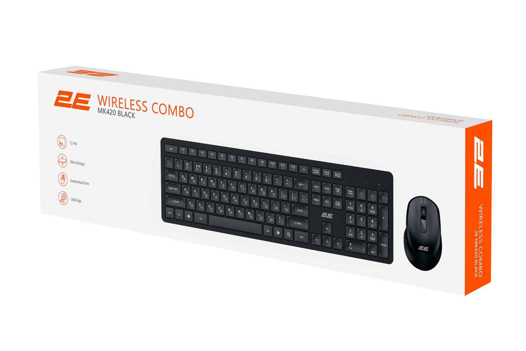Комплект клавіатура та миша 2E MK420 WL, EN/UK, чорний