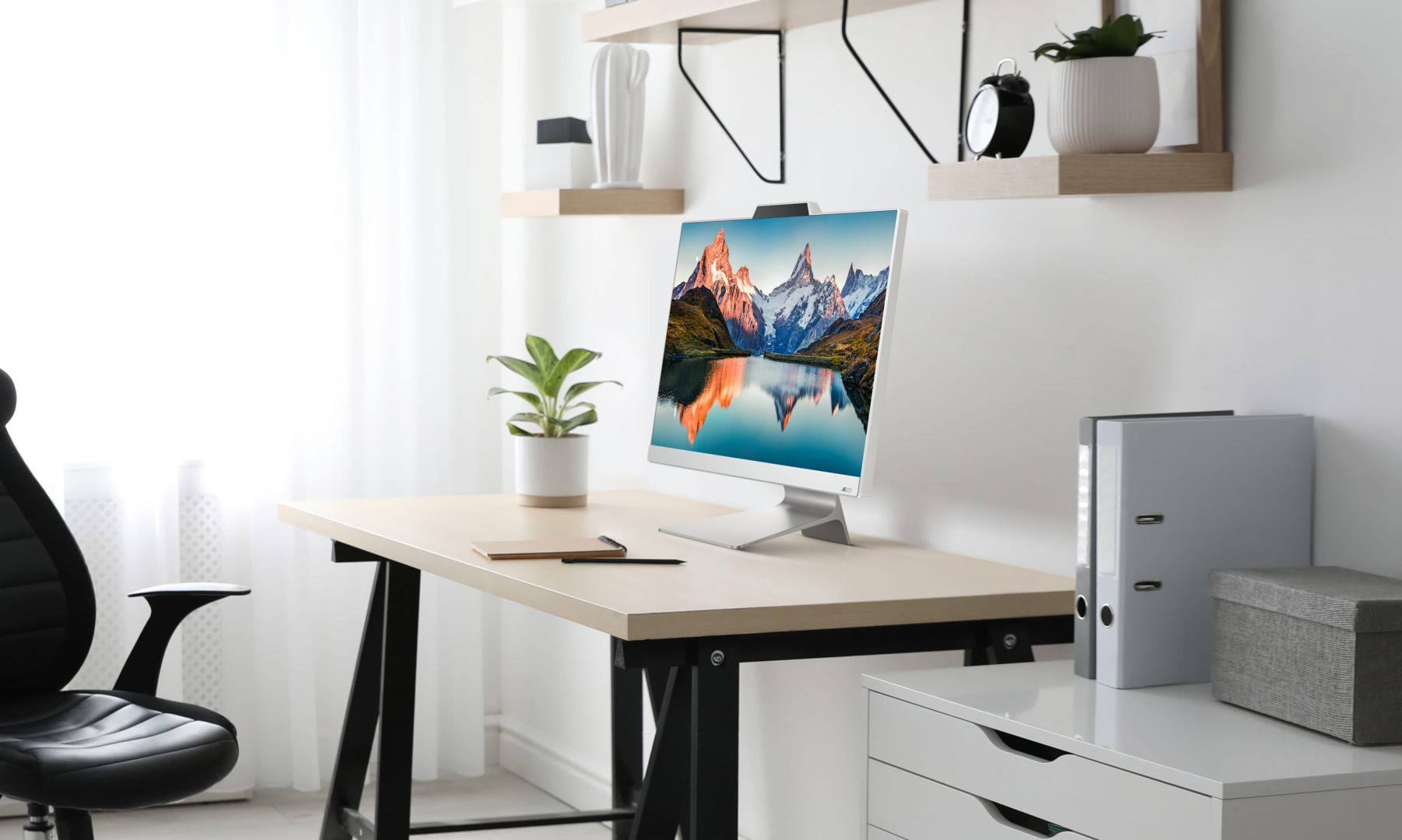 27-дюймовий Full HD дисплей з антибліковим покриттям створює комфорт для роботи з документами, вебсерфінгу та перегляду мультимедіа. Компактний формат моноблока економить простір, замінюючи традиційний системний блок і монітор.