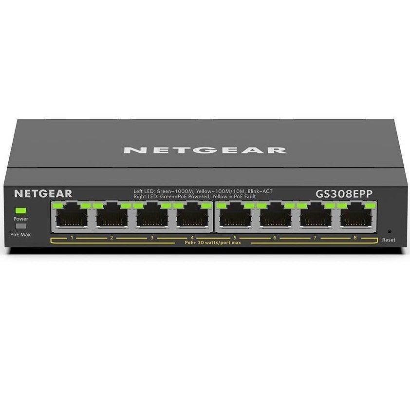 Комутатор NETGEAR GS308EPP 8xGE PoE, 123Вт, WebSmart