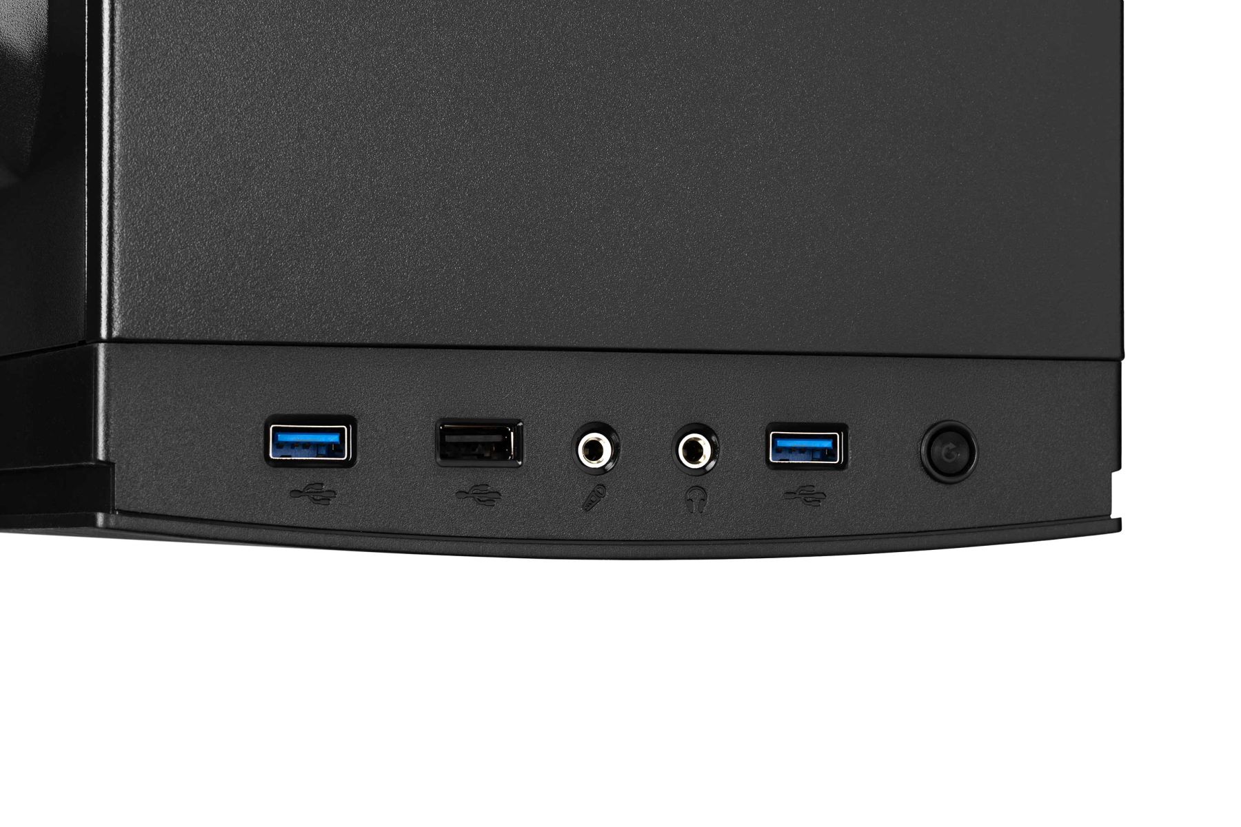 Для підключення, управління та контролю за комп'ютерною периферією в арсеналі корпусу є роз'єм 2xUSB 3.0,1xUSB 2.0,HD AUDIO+MIC, кнопки та індикатори Power, Reset, Power LED, HDD LED. Корпус з нижнім розташуванням блоку живлення (немає в комплекті).