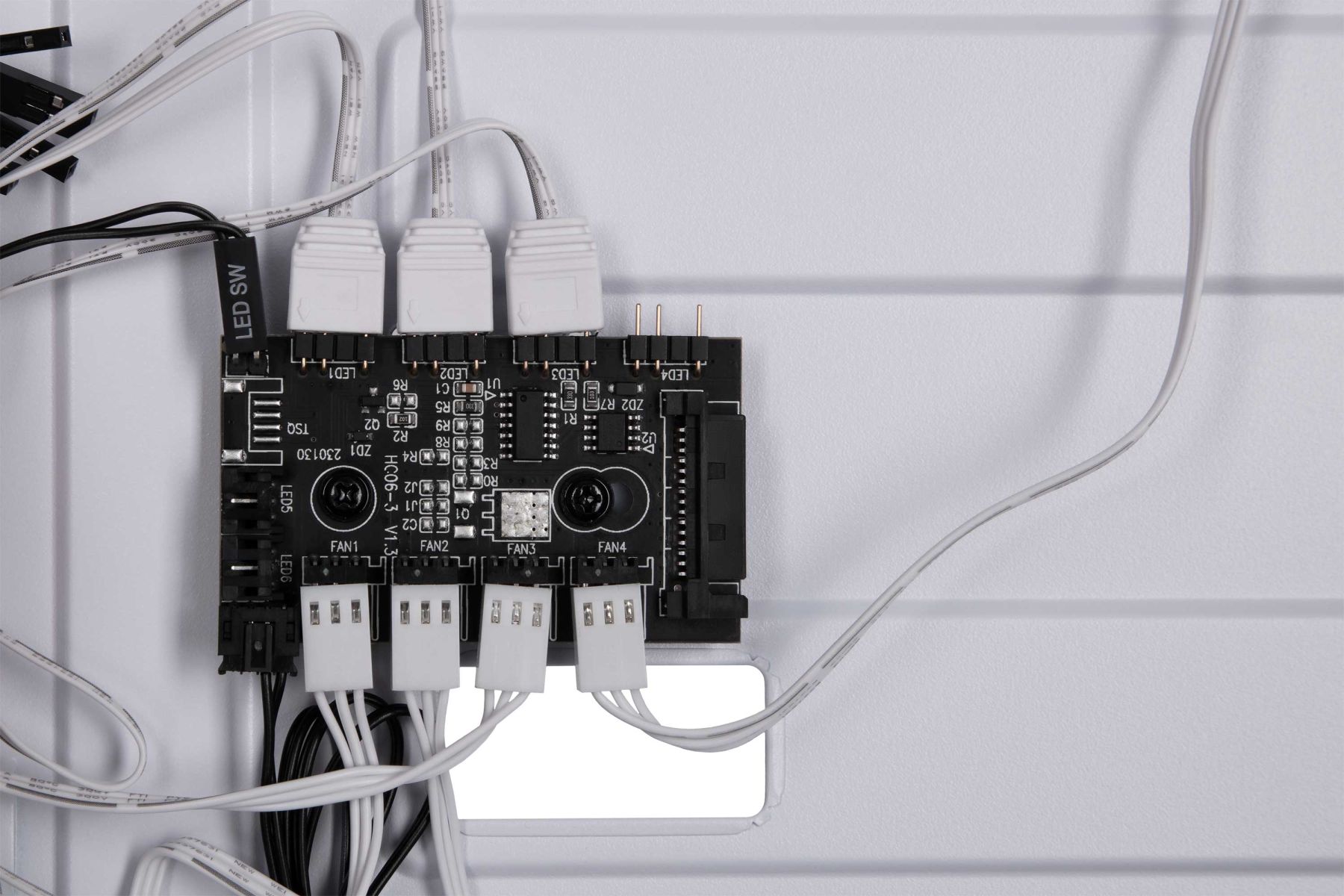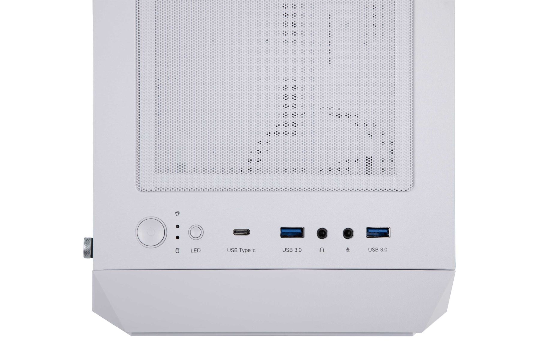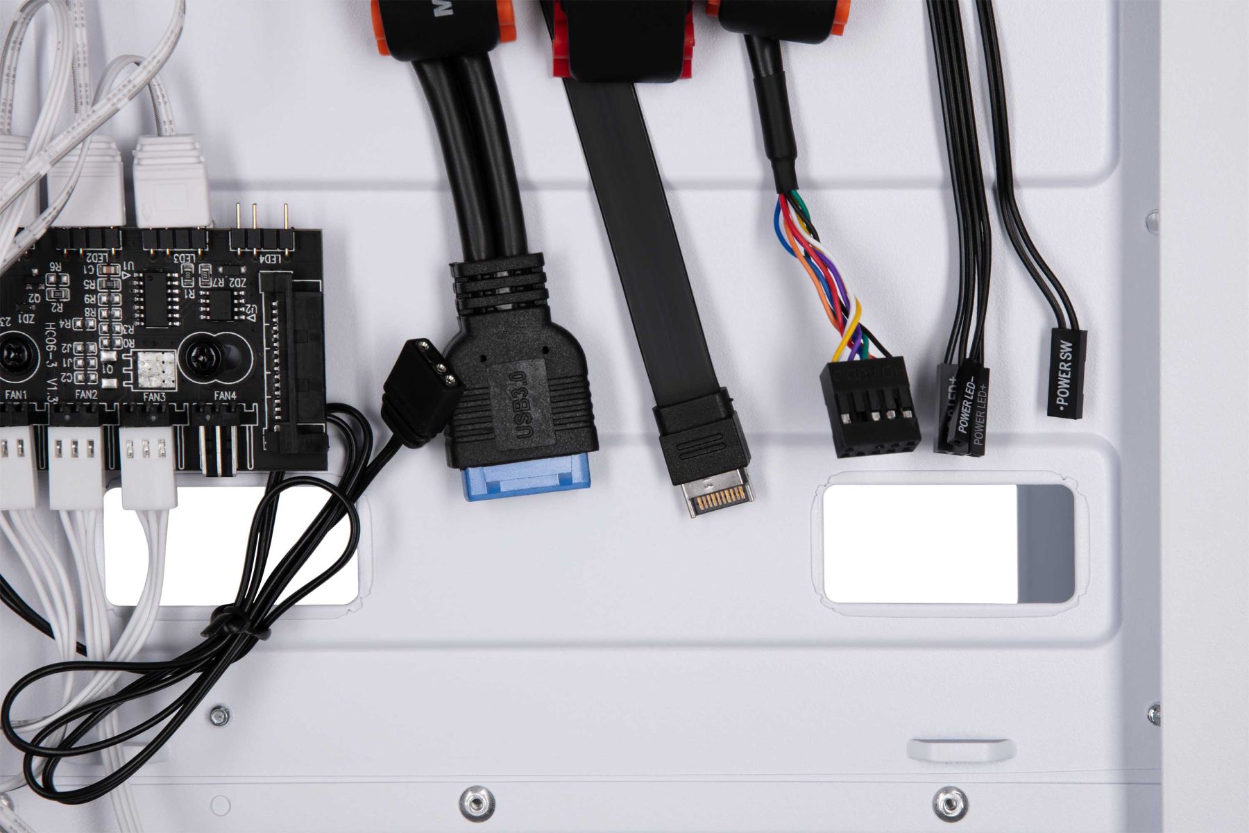 Для підключення, керування та контролю за комп'ютерною периферією та підсвічуванням, в арсеналі корпусу збудовані роз'єми 2xUSB3.0, 1хType-C, HD AUDIO+MIC, кнопки та індикатори Power, Reset, Power LED, HDD LED,додатково ARGB концентратор з можливістю підключення до материнської плати.