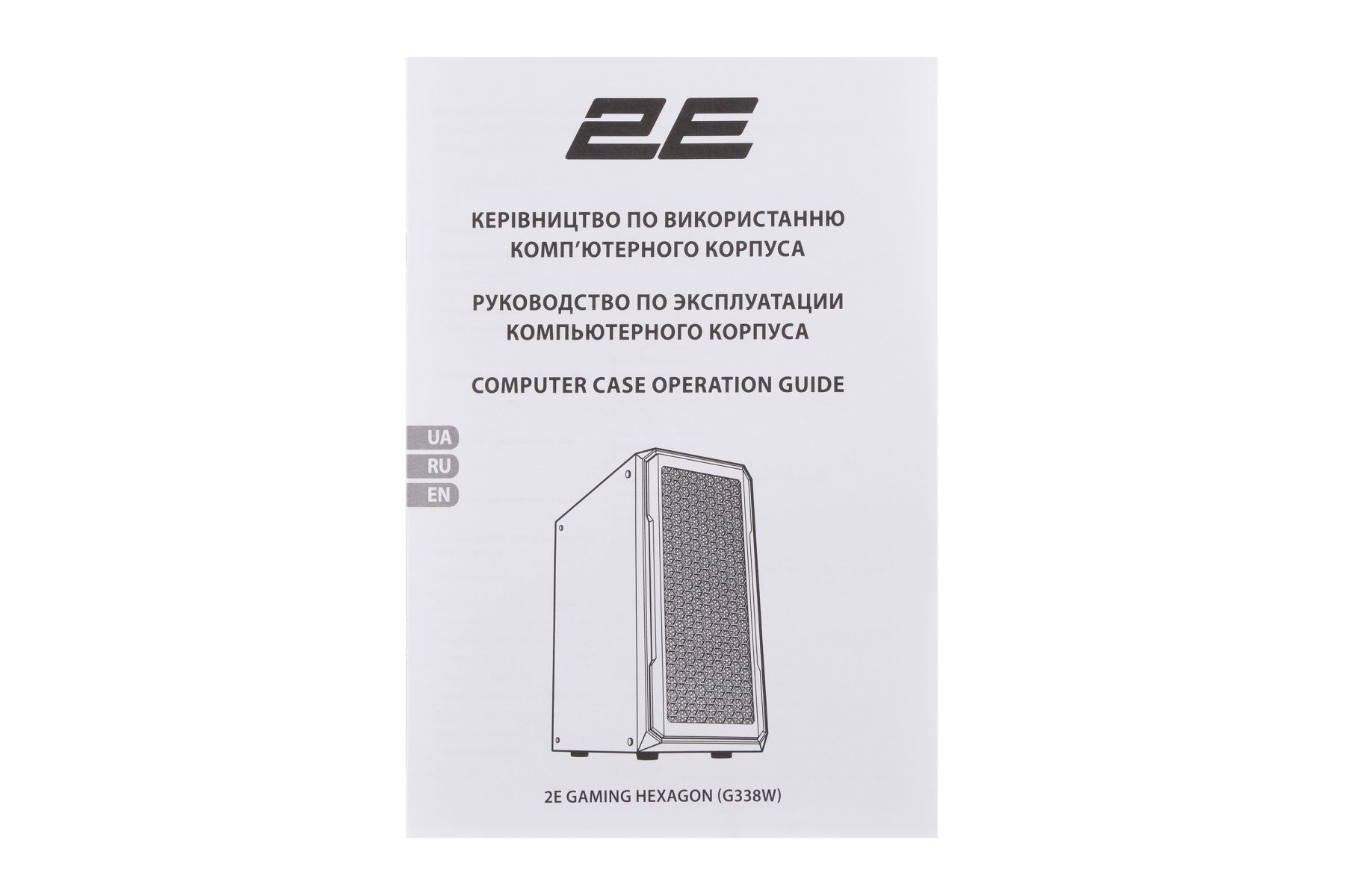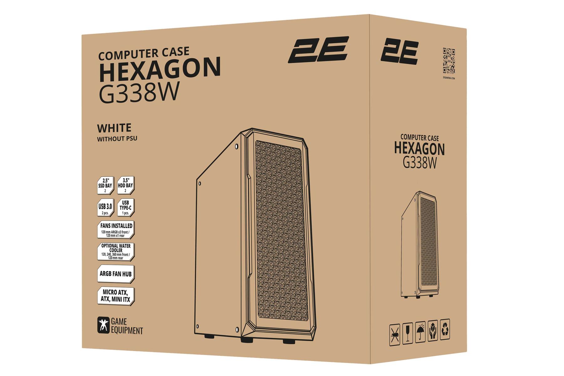 Корпус 2E GAMING Hexagon G338W без БЖ 2xUSB3.0, 1xUSBType-C, 3x120мм ARGB, 1x120мм, VGA 330мм, LCS ready, HUB, TG Side Panel, ATX, білий