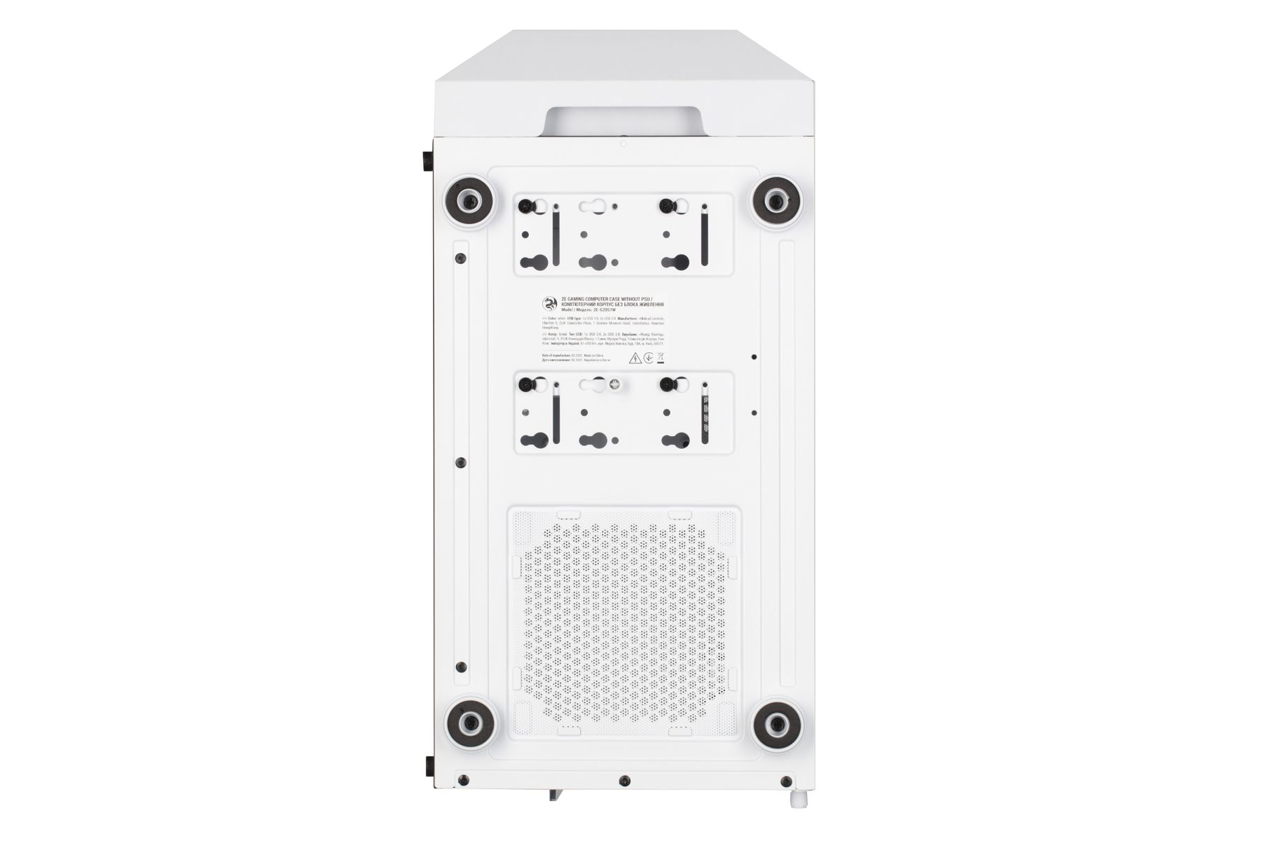 2E GAMING TURBO G2057W підходить для складання домашнього ПК та потужної ігрової системи, має стильний дизайн та продуману вентиляцію. Максимально можлива довжина відеокарти – 345 мм. Корпус надає можливості монтажу достатньої кількості накопичувачів та численних плат розширення (7 слотів розширення). Передбачено встановлення 6-ти вентиляторів та охолодження для процесора висотою до 165 мм. Корпус адаптований до можливості монтажу системи охолодження рідини на передню панель – радіатори 120/240/360мм, на задню – один 120мм радіатори, додатково передбачено простір для акуратного розміщення кабелів. На верхній панелі знімний пиловий магнітний фільтр.