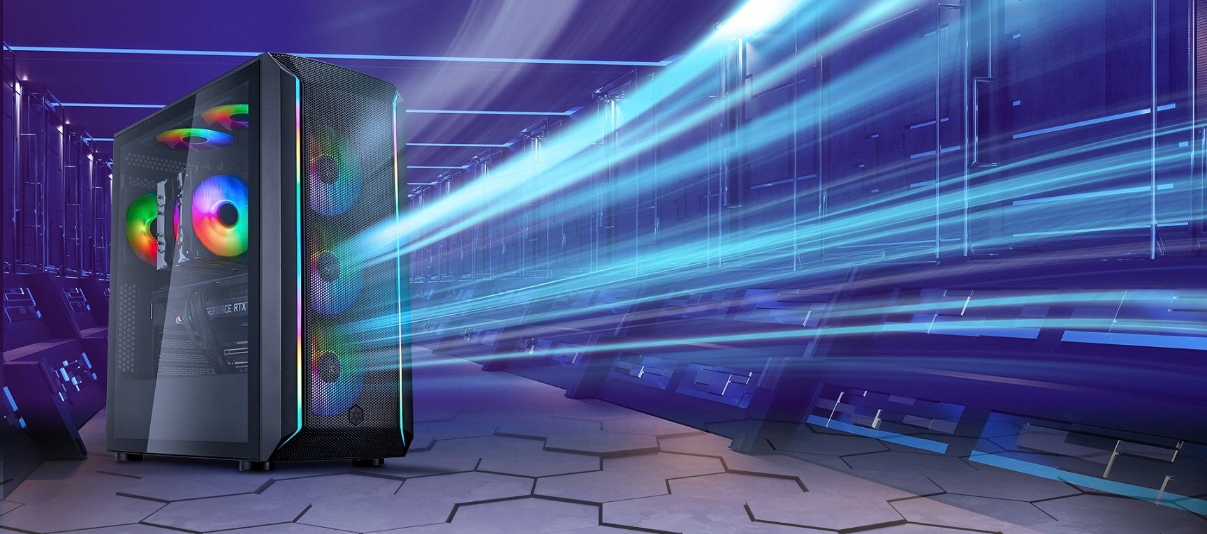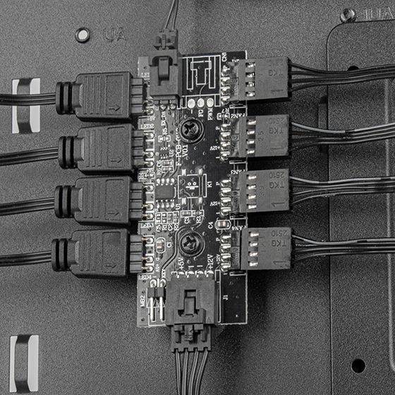 Передня панель має 2 світлові смуги ARGB, які підсвічують усю панель, а вентилятори з підсвічуванням ARGB, що входять до комплекту, створюють вражаючу естетичну ауру для корпусу з високою продуктивністю повітряного потоку.