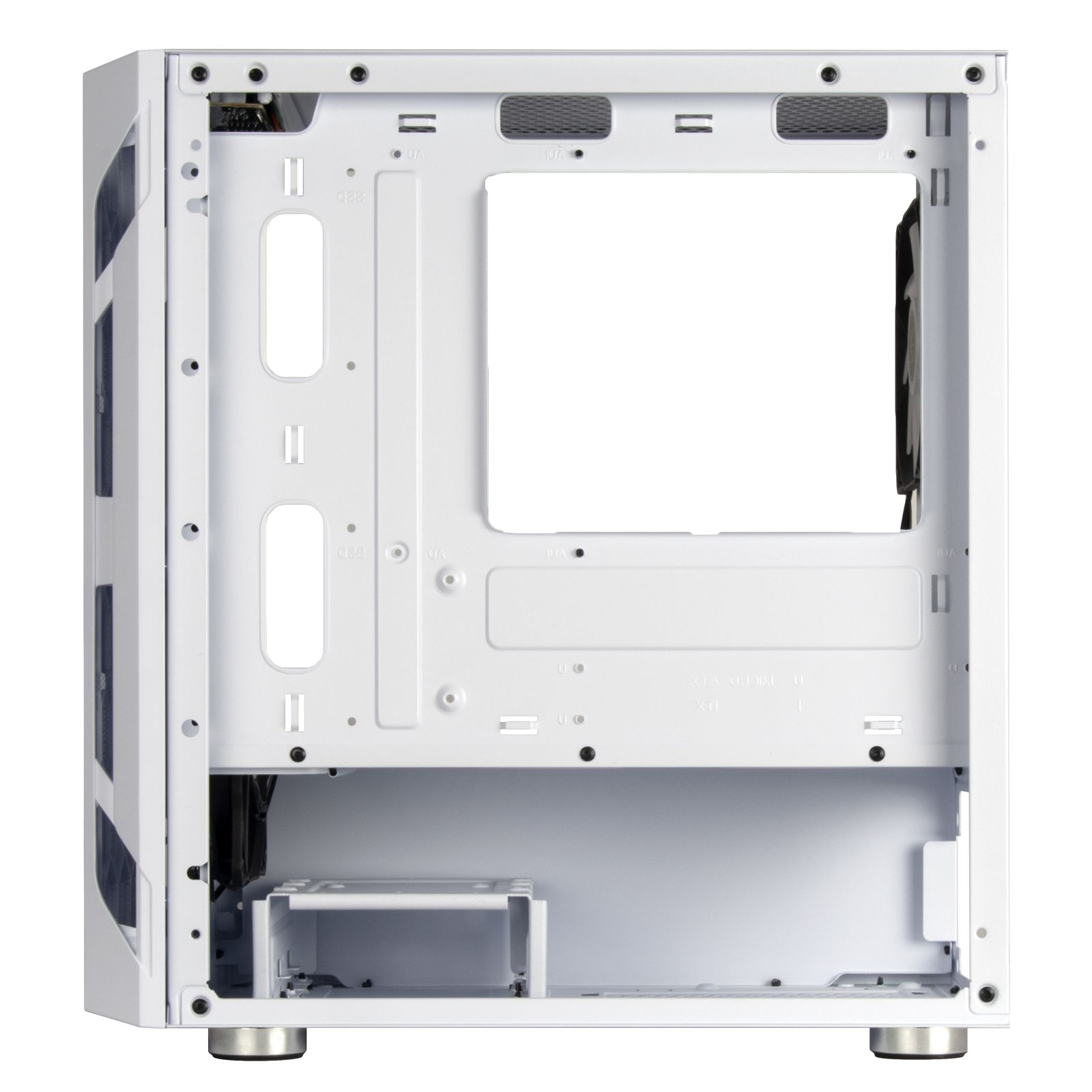 На передній панелі добре продувається металева сітка, яка сприяє безперешкодному проникненню повітряних потоків і охолодженню компонентів. Корпус із класичним дизайном і панеллю керування з верхнім розташуванням, має строгий і стриманий вигляд. Бічна панель із загартованого скла. Доповнюють дизайн три 120мм ARGB вентилятори.