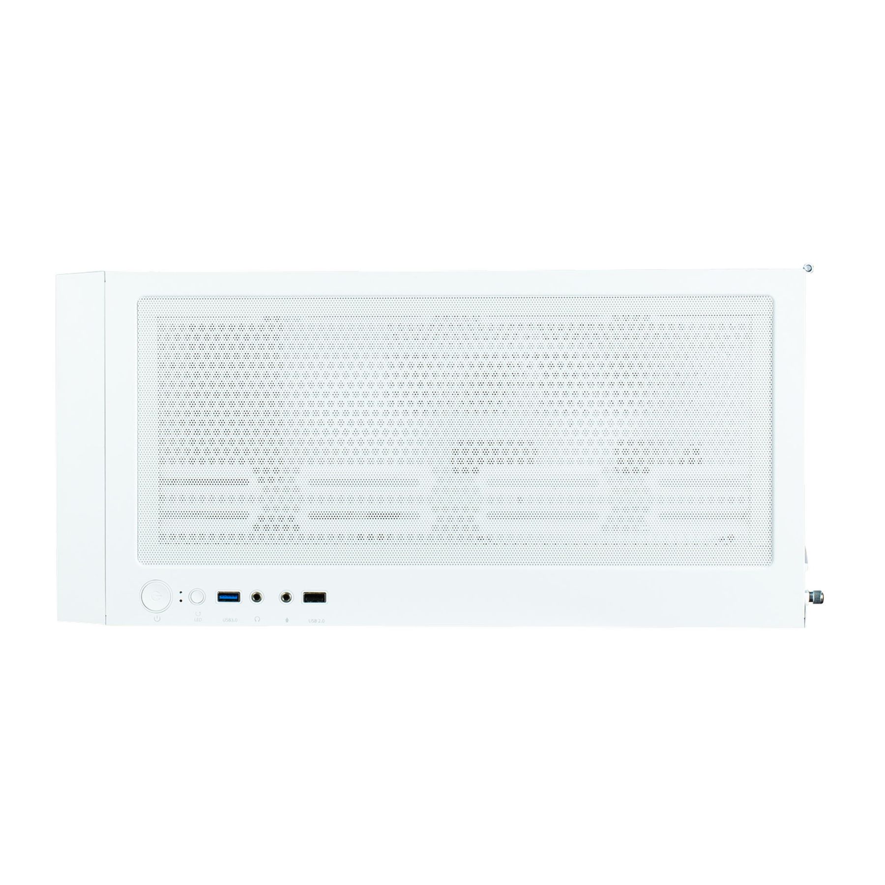 Передня панель – металева сітка для активної вентиляції, крізь яку проглядається свічення встановлених вентиляторів.
