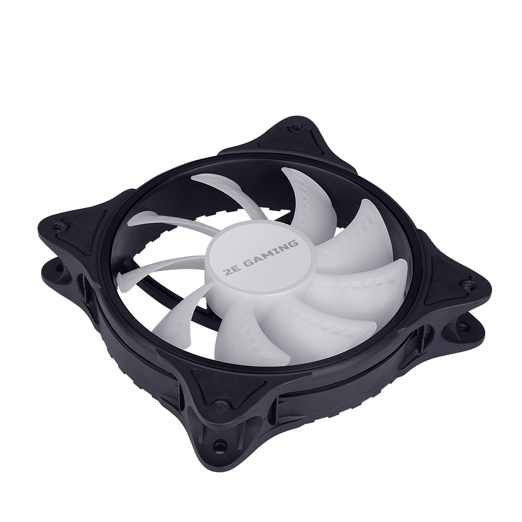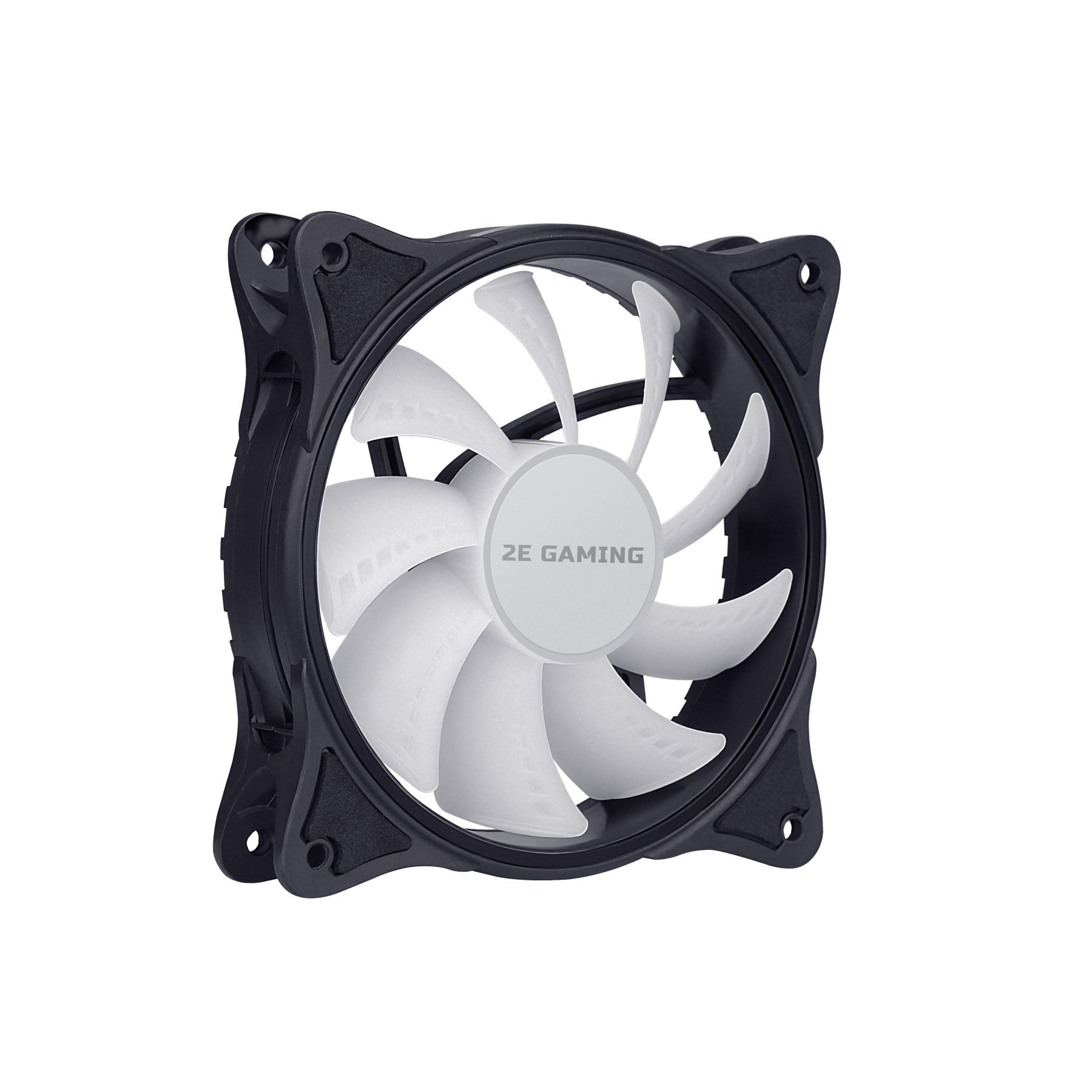 2E Gaming F120IR-ARGB – класичний 120мм вентилятор 2510-4PIN/+ 5V 3PIN RGB з білими лопатями та керованим RGB підсвічуванням. З чотирьох сторін розміщені антивібраційні накладки. Сучасний матеріал накладок – силікон не деформується при нагріванні, гасить вібрацію, еластичний та витривалий до різного роду навантажень. Вентилятор на підшипнику ковзання, працює тихо при максимальній частоті обертів 1200±10% об/хв. ARGB підсвічення розподіллено по внутрішній частини вентилятора.