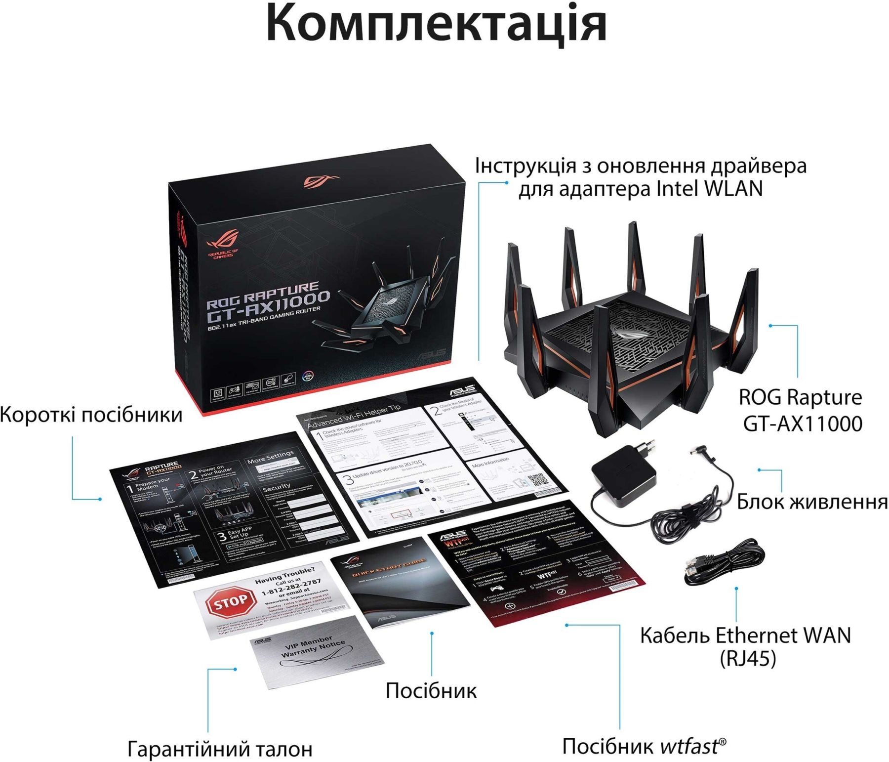 ROG Rapture GT-AX11000 - це бездротовий маршрутизатор, розроблений спеціально для любителів комп'ютерних ігор. Високошвидкісна передача даних по бездротовій мережі Wi-Fi, бездоганно стабільна робота під важкими навантаженнями і потужні засоби інформаційної безпеки поєднуються в ньому з інноваційними геймерським оптимізаціями. Програмний інтерфейс Gaming Center, оформлений в ексклюзивному стилі ROG, пропонує повний контроль над усіма функціями пристрою.