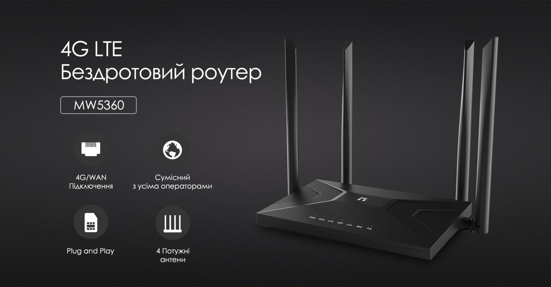 Індикатори:WPS, Живлення, LAN, Wi-Fi, Power, EWAN, LTE Strong, LTE Middle, LTE Weak