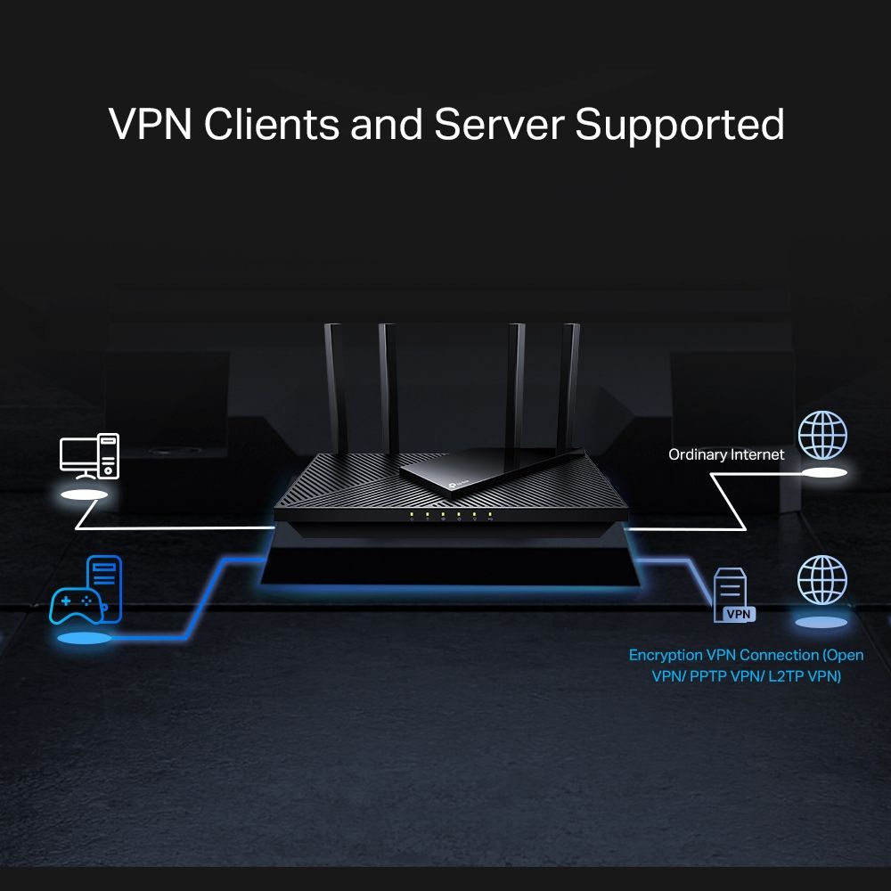- Підтримується клієнт VPN: дозвольте пристроям у вашій домашній мережі отримувати доступ до віддалених серверів VPN без необхідності інсталювати програмне забезпечення VPN на кожному пристрої.