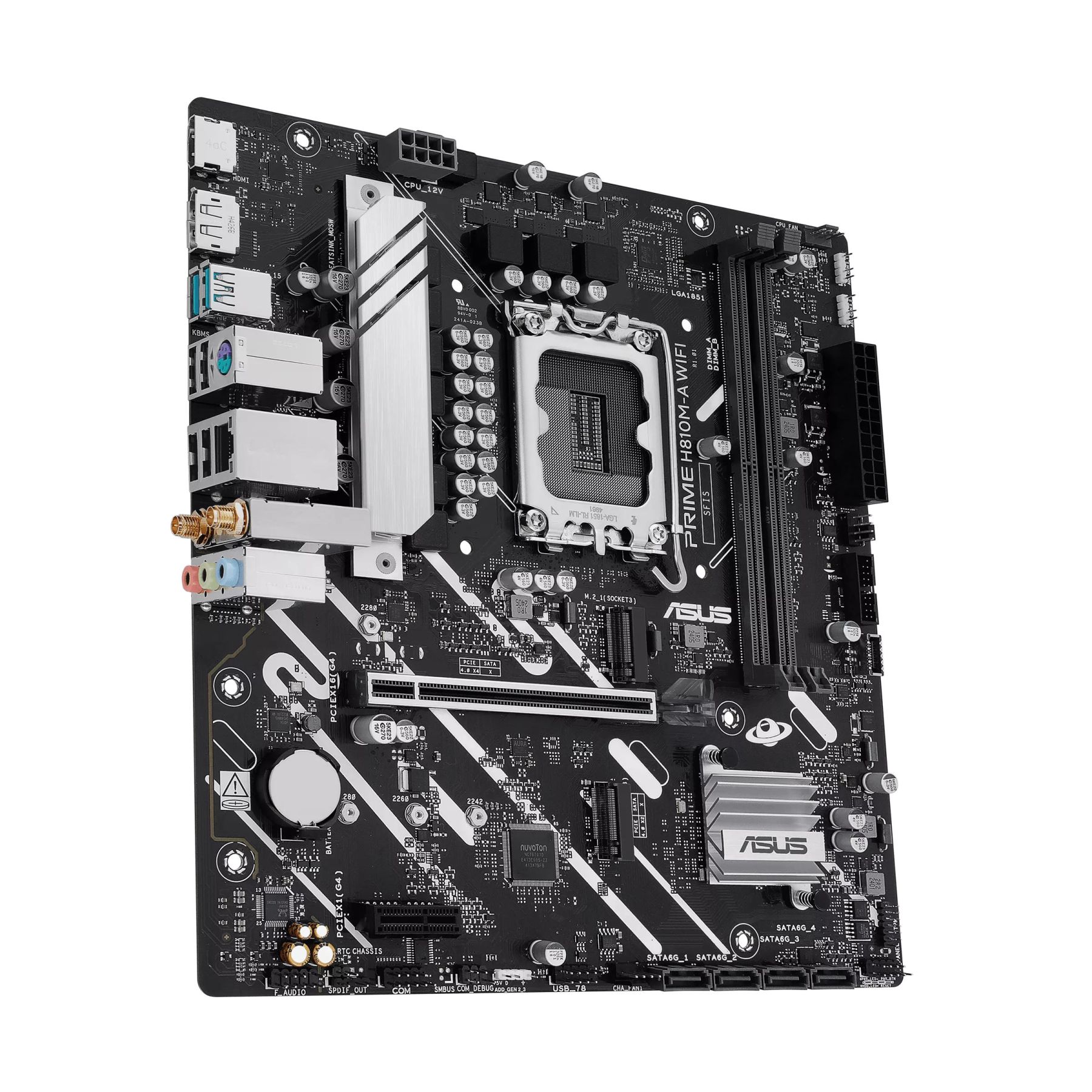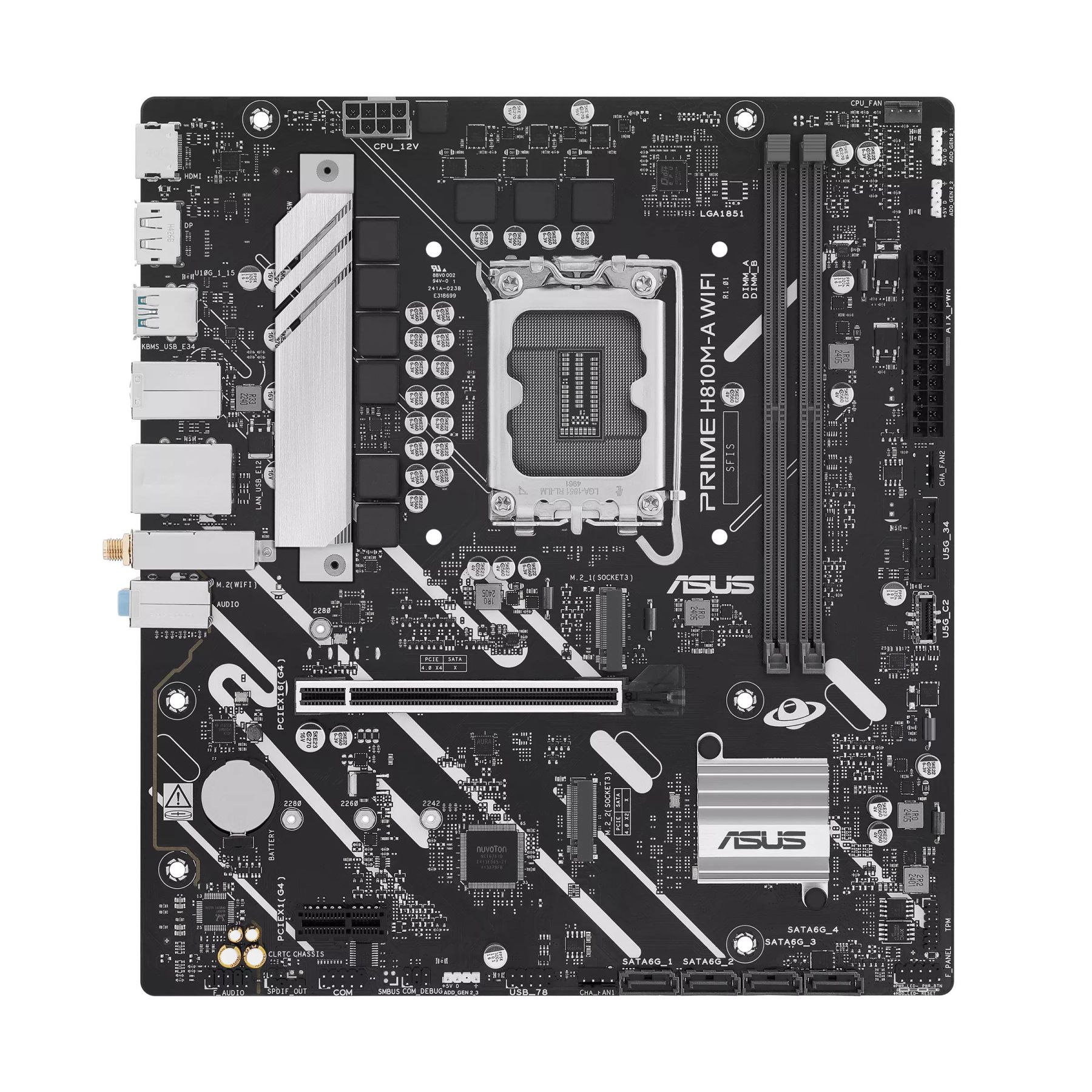 ASUS PRIME H810M-A WIFI побудована на чипсеті Intel H810 і підтримує процесори Intel Core Ultra Series 2. Два слоти DDR5 дозволяють встановити до 128 ГБ оперативної памʼяті з двоканальною архітектурою. Для зберігання даних передбачено два розʼєми M.2 та чотири порти SATA. Плата оснащена відеовиходами HDMI та DisplayPort для підключення сучасних дисплеїв. Інтегровані бездротові модулі спрощують підключення до мережі та периферії.