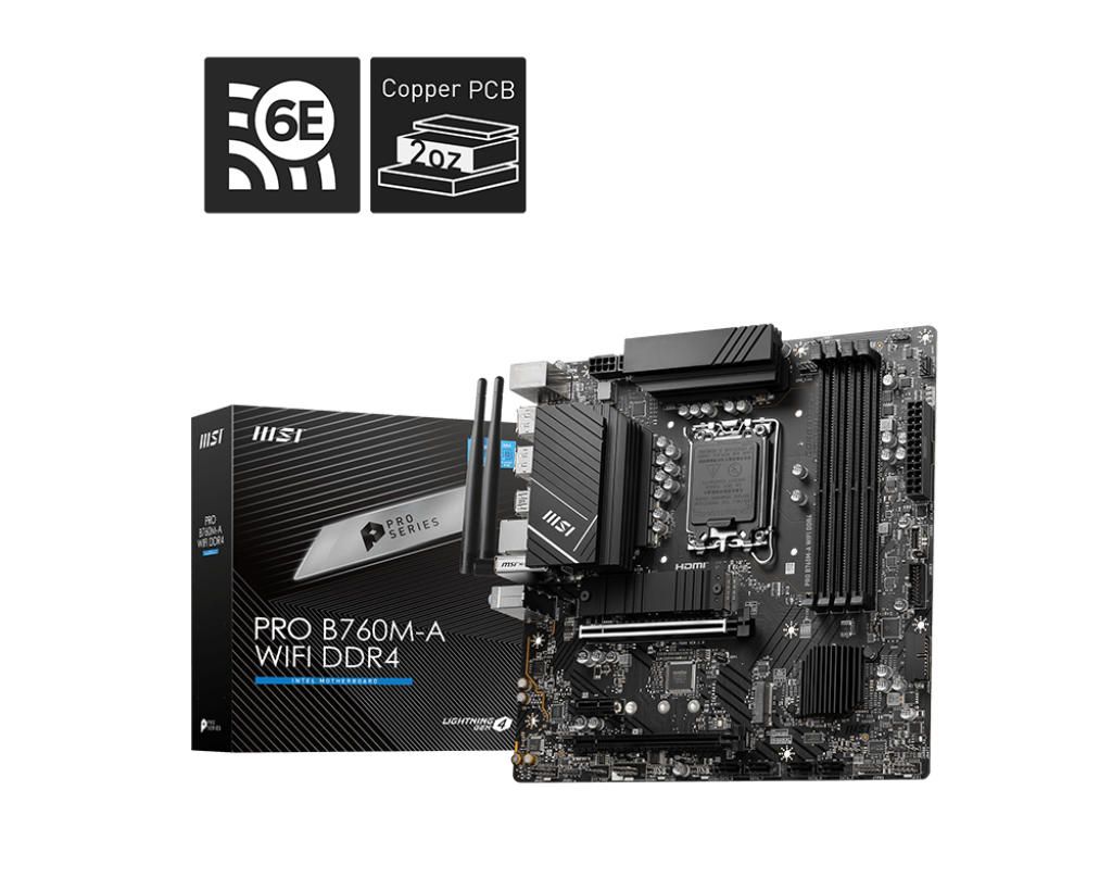 Материнcька плата MSI PRO B760M-A WIFI DDR4 s1700 B760 4xDDR4 M.2 HDMI DP WiFi BT mATX