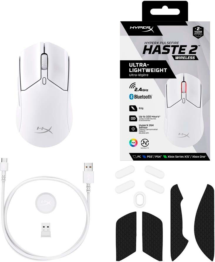 Миша HyperX Pulsefire Haste 2, RGB, USB-A/WL/BT, білий