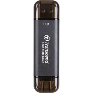 Transcend TS1TESD310C 1 TB — надкомпактний зовнішній SSD з об’ємом 1 ТБ, що підтримує USB 3.2 Gen 2 з максимальною швидкістю передачі даних до 10 Гбіт/с. Читання до 1050 МБ/с і запис до 950 МБ/с забезпечуються завдяки технології SLC-кеша і 3D NAND. Форм‑фактор «флешки» з двома конекторами (USB-A і USB-C) значно спрощує використання на різних пристроях.