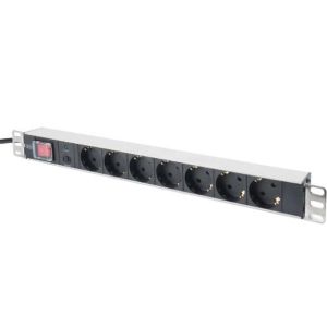 Пристрій розподілу електроживлення DIGITUS 1U, 7xSchuko, 16A, 250V, вимикач, OLP, вилка Schuko