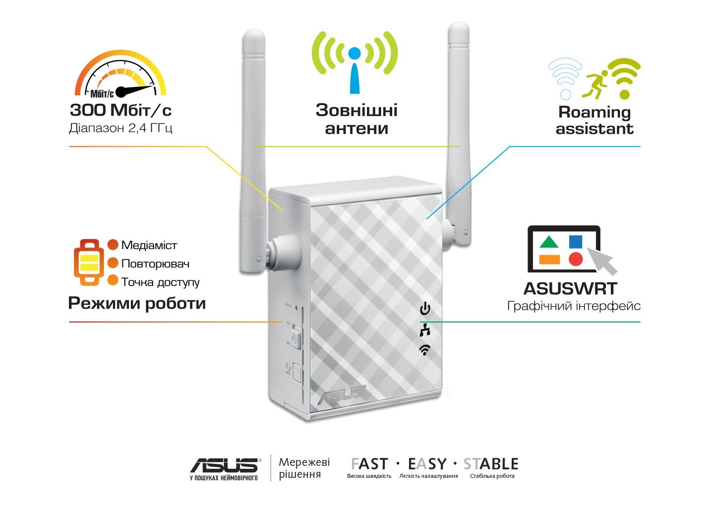 Розширювач покриття WiFi ASUS RP-N12 N300 1хFE LAN
