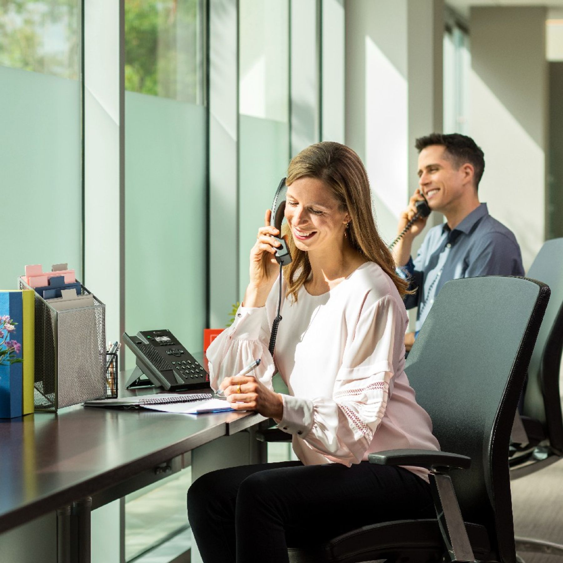 VVX 150 підтримує технології Poly HD Voice та Poly Acoustic Fence. Разом вони значно покращують найважливіший компонент використання VVX – чіткість голосу. HD Voice забезпечує чудову якість звуку завдяки передовим у галузі можливостям обробки голосу. Ексклюзивна технологія Polyacoustic Fence від Poly захищає ділові розмови від сторонніх шумів, луни та відволікаючих факторів.