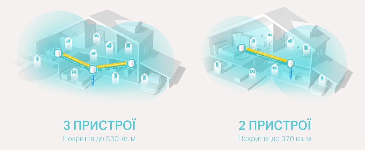 Пристрої Deco формують єдину Wi-Fi мережу. Смартфони або планшети будуть автоматично підключатися до Deco на максимальній швидкості в будь-якій точці будинку, забезпечуючи безперервне з'єднання.