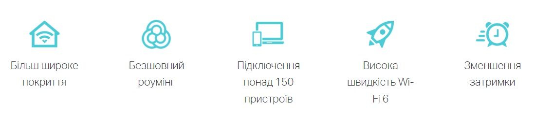 Wi-Fi 6 — це стабільне і швидке бездротове підключення в будинках з великою кількістю пристроїв. Грайте в онлайн-ігри і спілкуйтеся по відеозв'язку без затримок - навіть коли дані передаються з декількох пристроїв одночасно.
