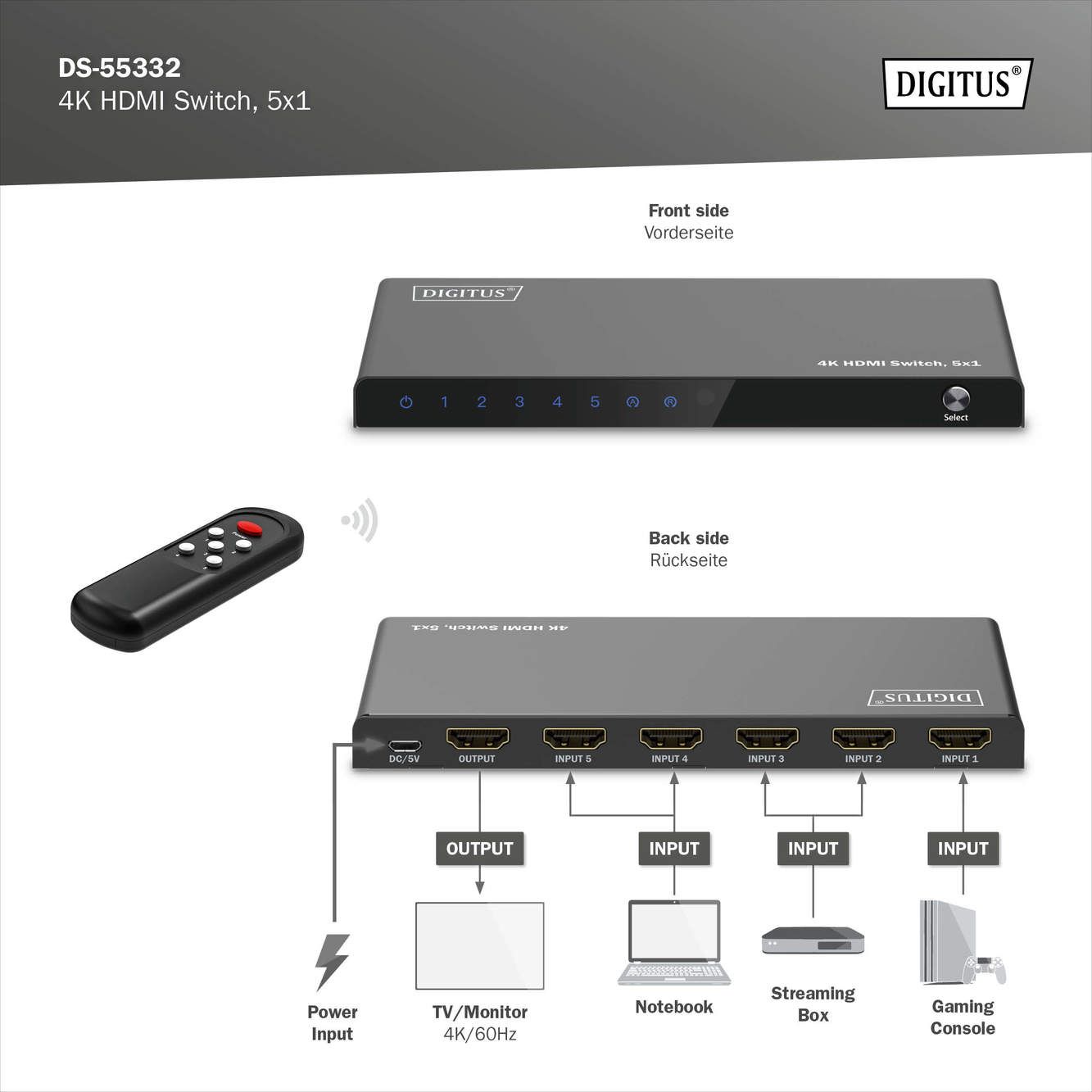Відеокомутатор DIGITUS UHD HDMI (INx5 - OUTx1), 4K