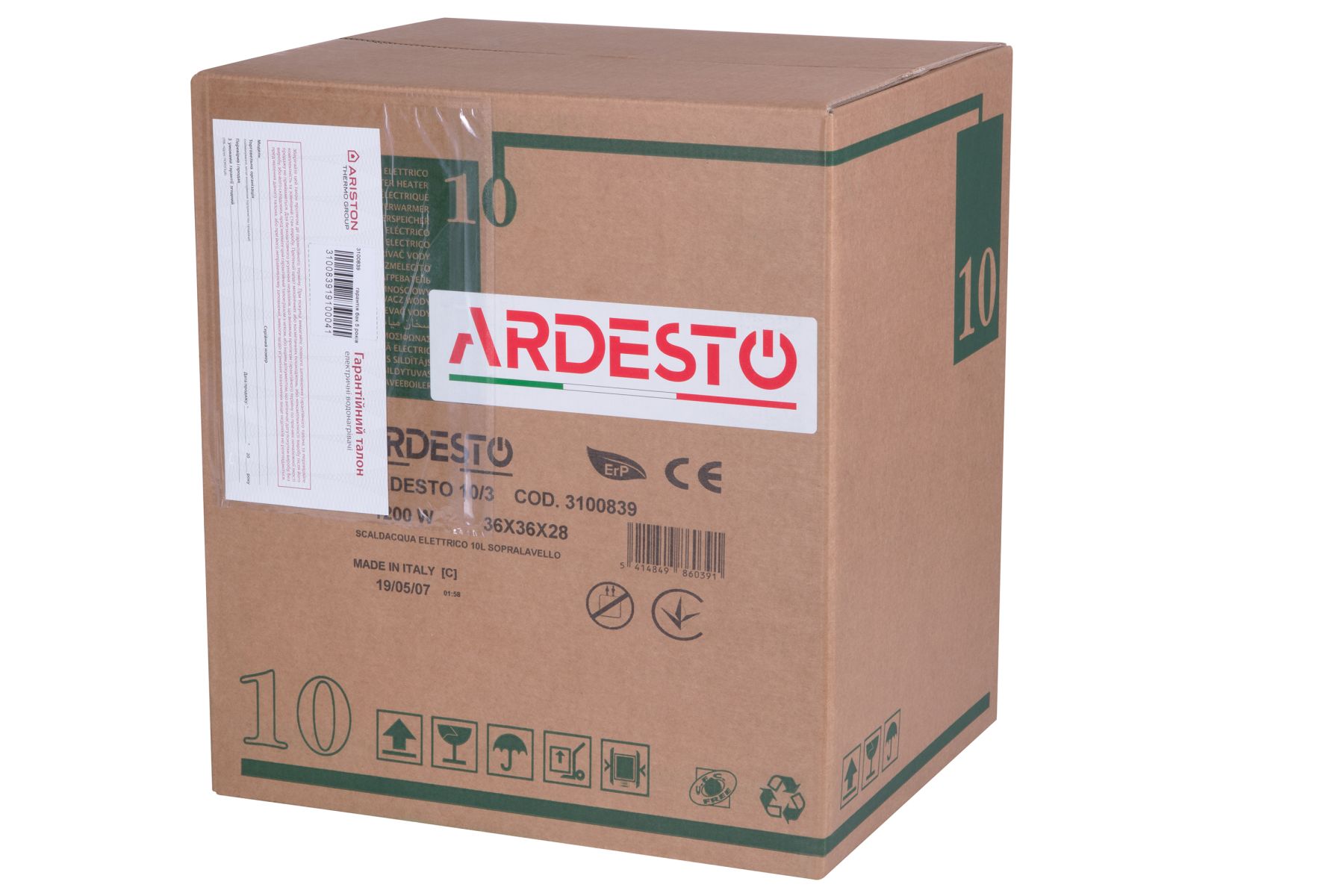 Ardesto EWH-10OMWMI вироблено в Італії, що гарантує стабільну роботу та високий рівень якості. Гарантія на бак складає 2 роки, а на електроніку – 1 рік. При заміні магнієвого анода 1 раз у 2 роки, гарантійне обслуговування баку продовжується одноразово на 1 рік.