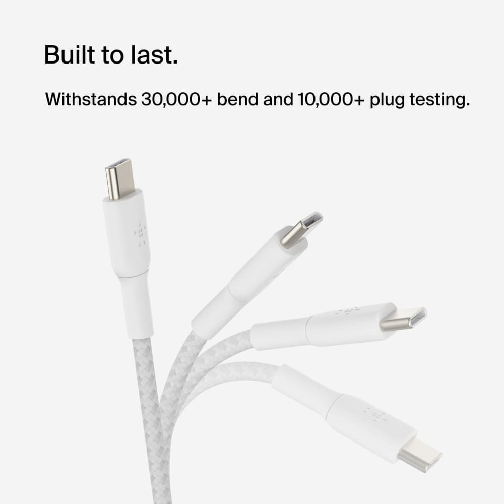 Кабель USB-C > USB-C зарядки/синхронизации Belkin 2м, 60Вт, Type-C, витой, белый