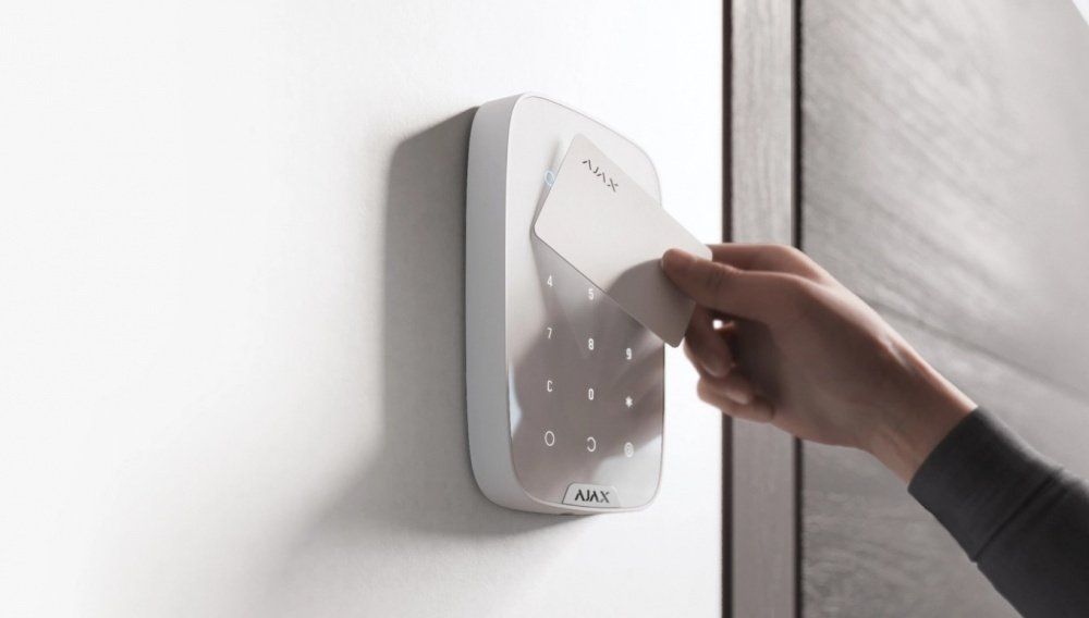 Чтобы снять систему безопасности с охраны, достаточно поднести Pass к считывателю на клавиатуре. Эта защищенная от копирования карта позволяет управлять режимами охраны без пароля, учетной записи и доступа к приложению Ajax.