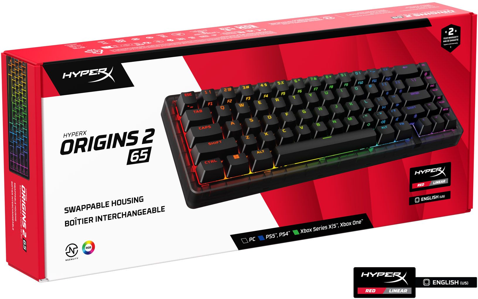 Клавиатура механическая HyperX Alloy Origins 2 65key, Red, USB-A, Hot-Swap, EN/UA, RGB, черный