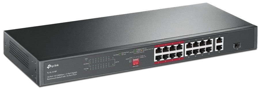 Коммутатор TP-LINK 16xFE (16xPoE), 2xSFP, 150Вт, Неуправляемый TP-Link TL-SL1218P